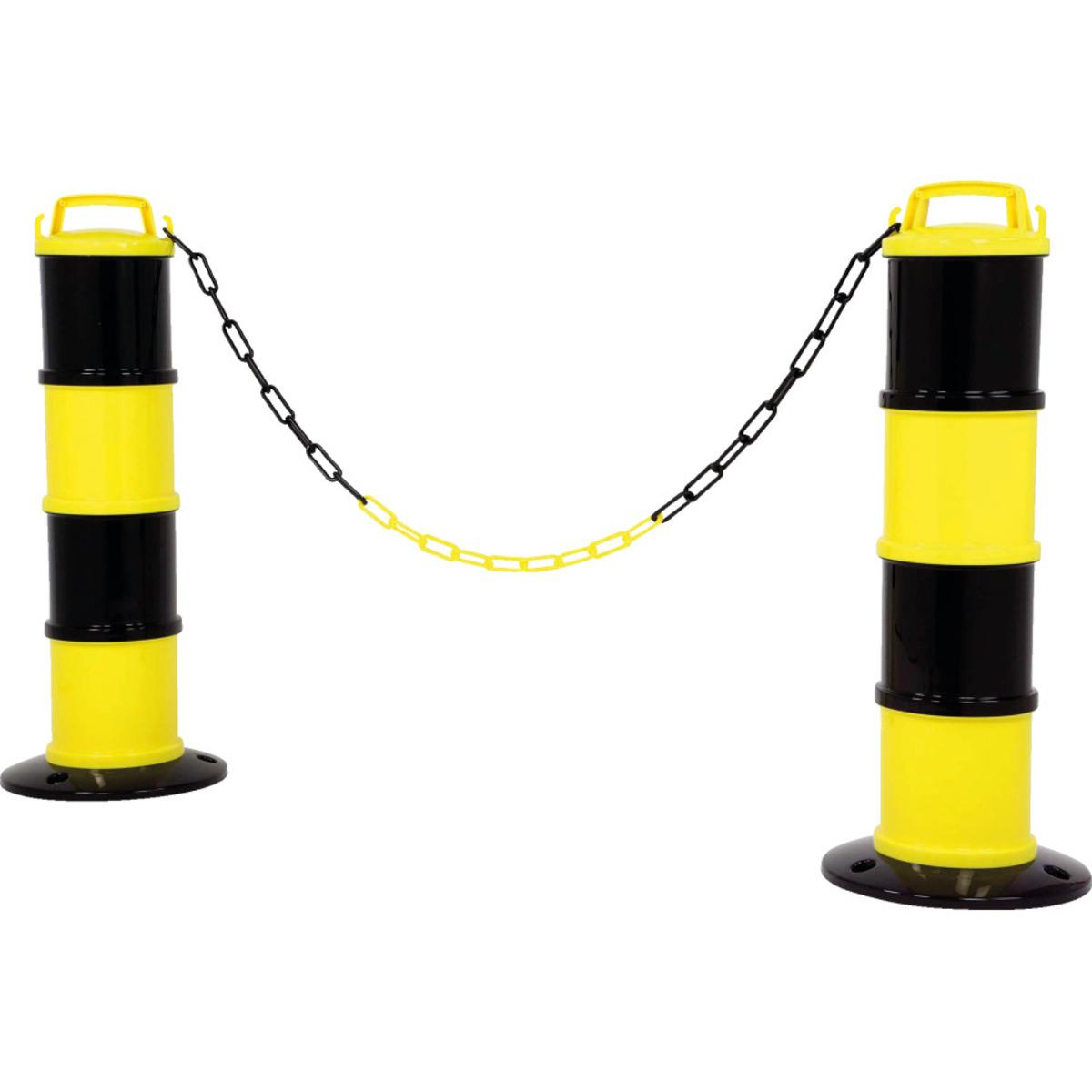 Auswahl: Absperrpfosten Modular, Sockel, 4 Elemente, Abdeckung, Kette, gelb/schwarz, 850x320mm