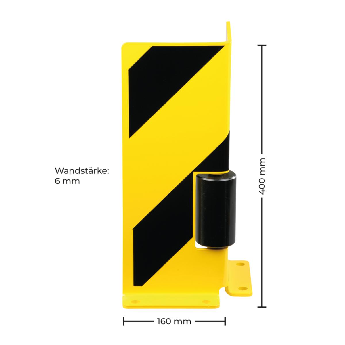 Auswahl: Eckanfahrschutz L-Form mit Leitrolle, gelb/schwarz, Stahl, 400mm