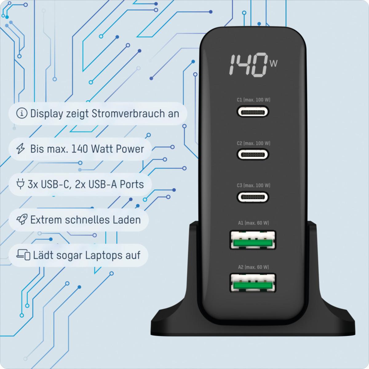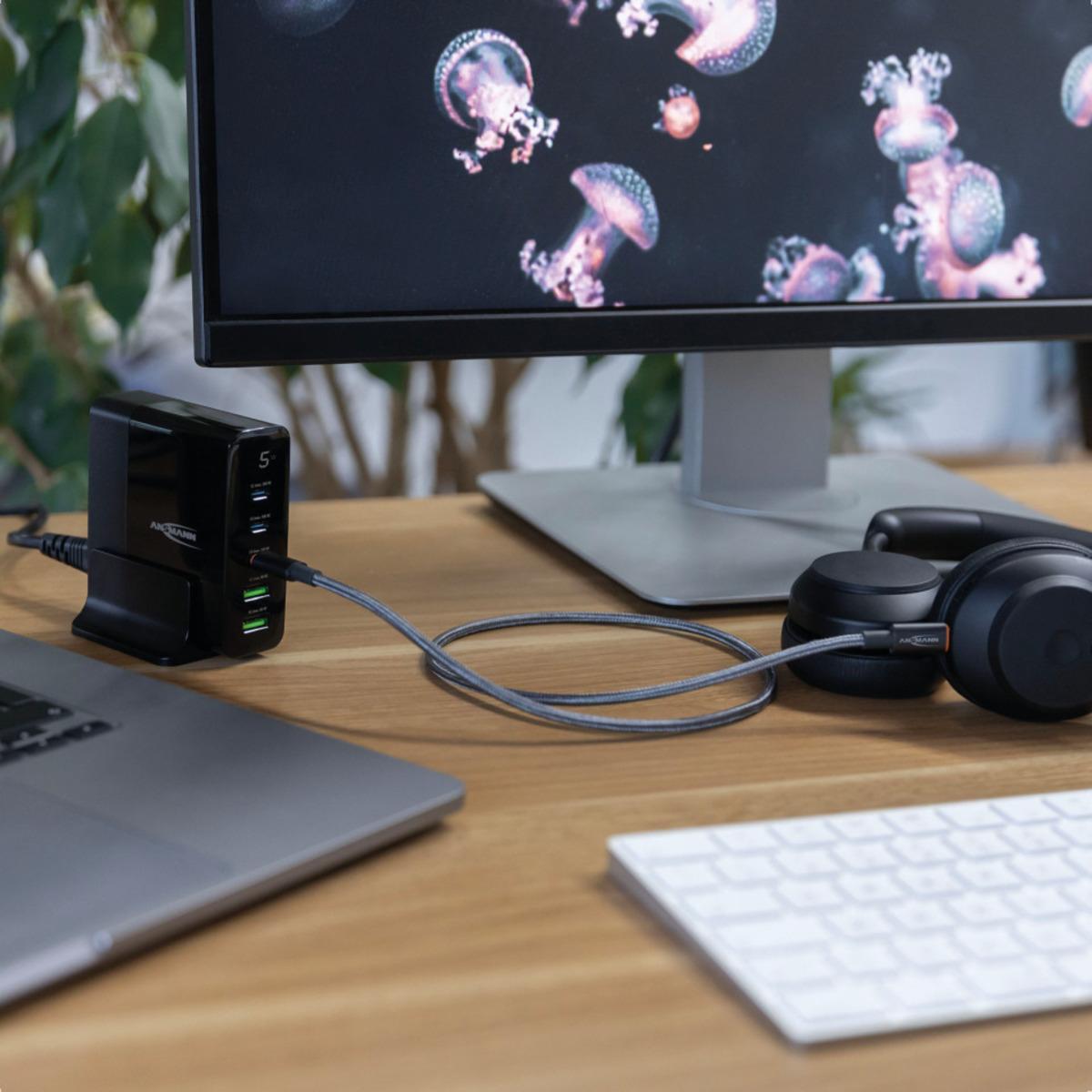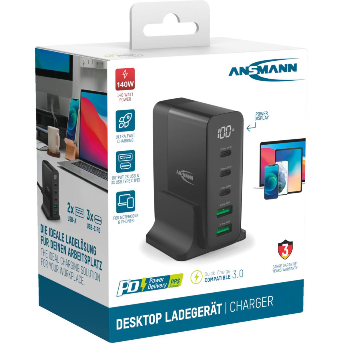 Auswahl: ANSMANN Desktop Charger, USB-Ladegerät mit 5 USB-Ports und 140 W, 80x85x31mm