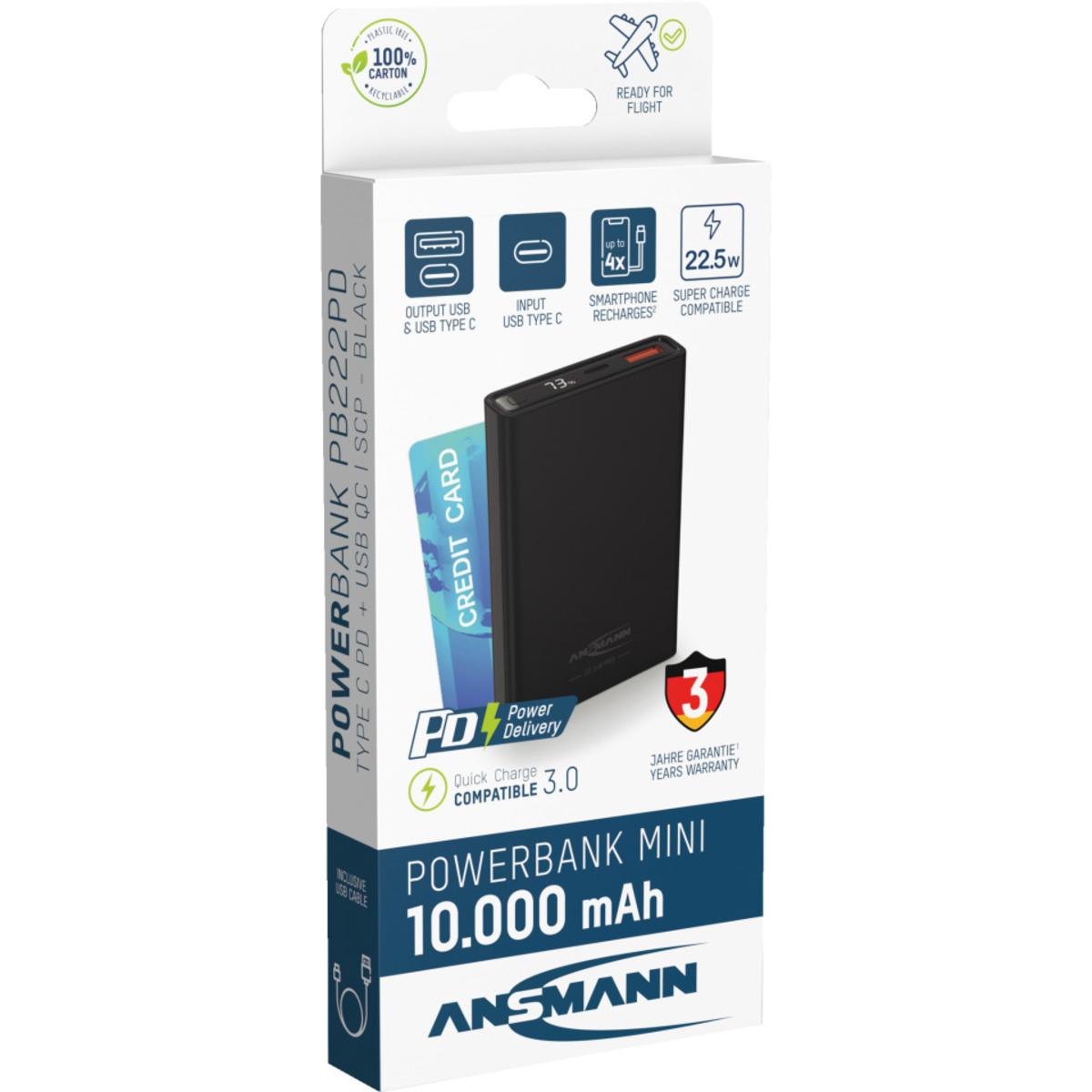 Auswahl: ANSMANN Powerbank PB222PD, Quick Charge 3.0, 10000 mAh, 38, 5 W, USB-C Ladekabel