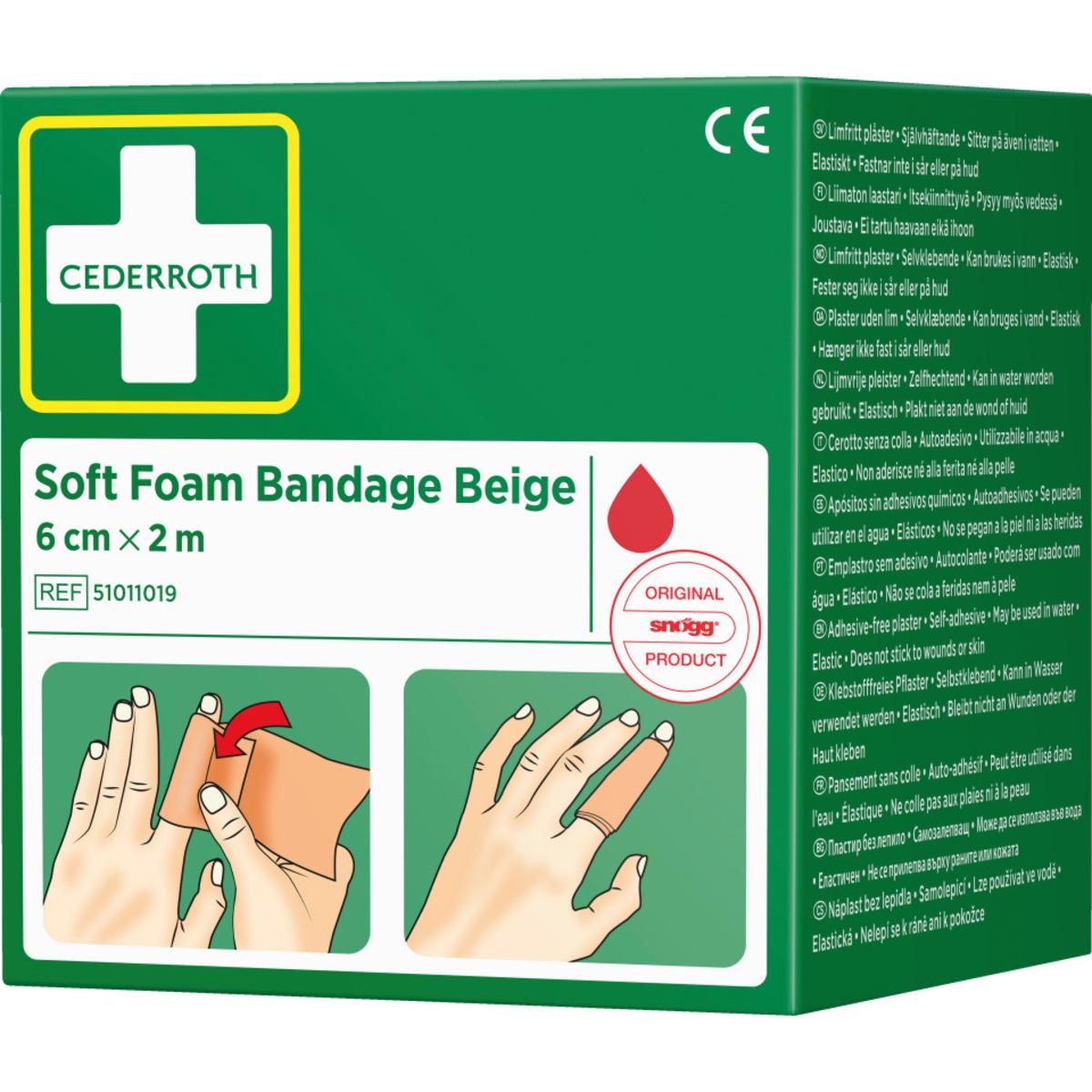Elastische, selbstklebende CEDERROTH Soft Foam Bandage zum Einsatz auf kleineren Wunden. Haftet nicht auf der Wunde oder Haut, verliert seine Hafteigenschaften nicht im Wasser, kann auch zusammen mit Salben oder Cremes verwendet werden. Zum einmaligen Gebrauch.