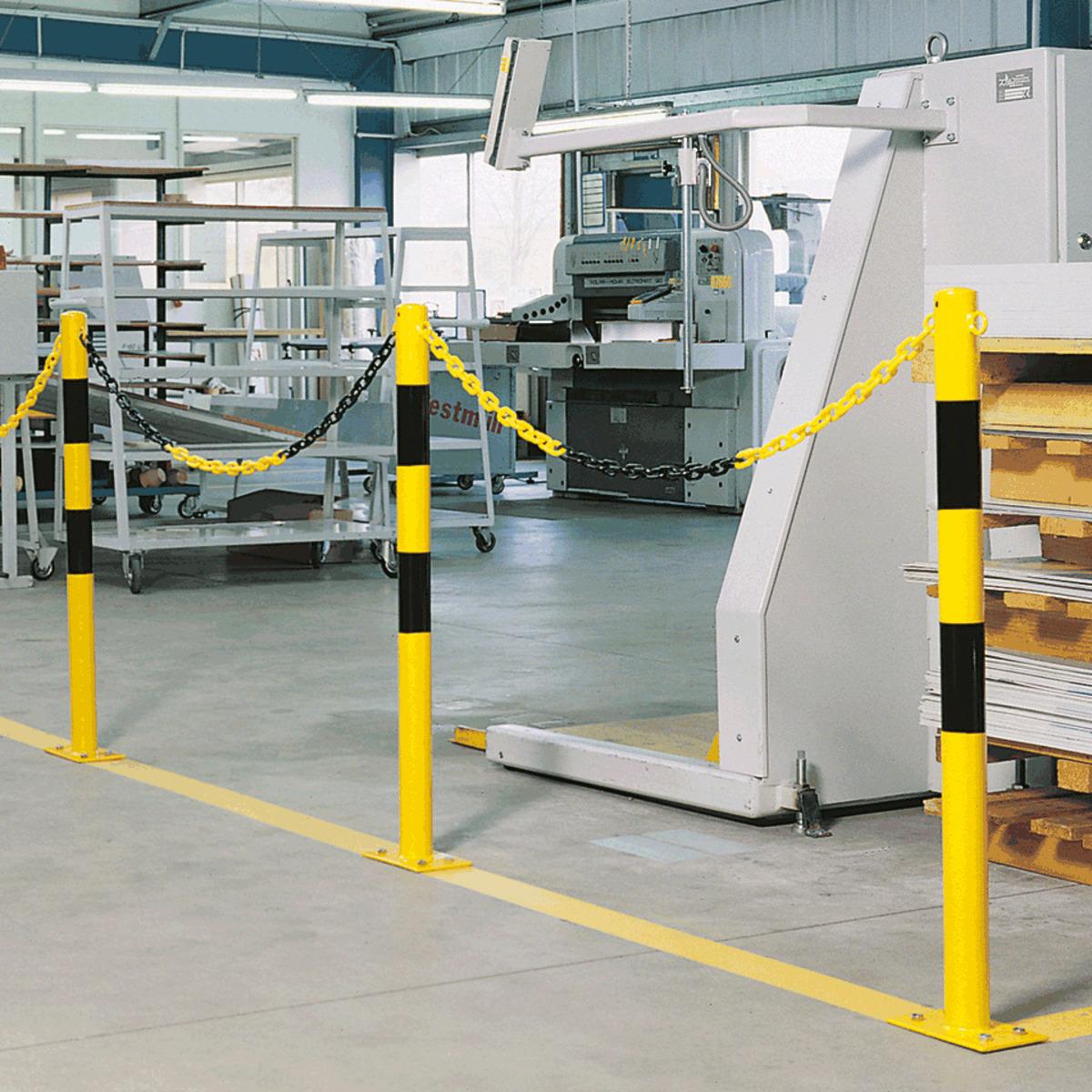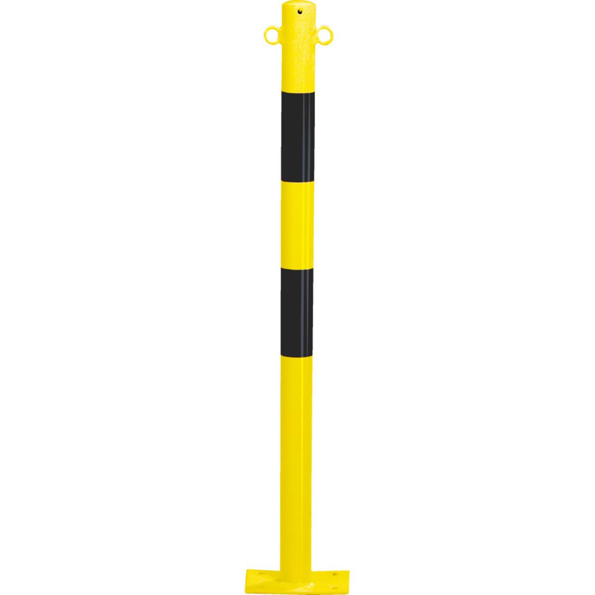 Absperrpfosten Bern zum Aufdübeln für den Innen- und Außeneinsatz, zur Sicherung von Zufahrten und Parkplätzen, als Ramm- und Anfahrschutz oder zur Begrenzung in Lager- oder Produktionshallen, Bodenplatte mit 4 Bohrungen (Ø 12,5 mm), Befestigungsmaterial separat mitbestellen