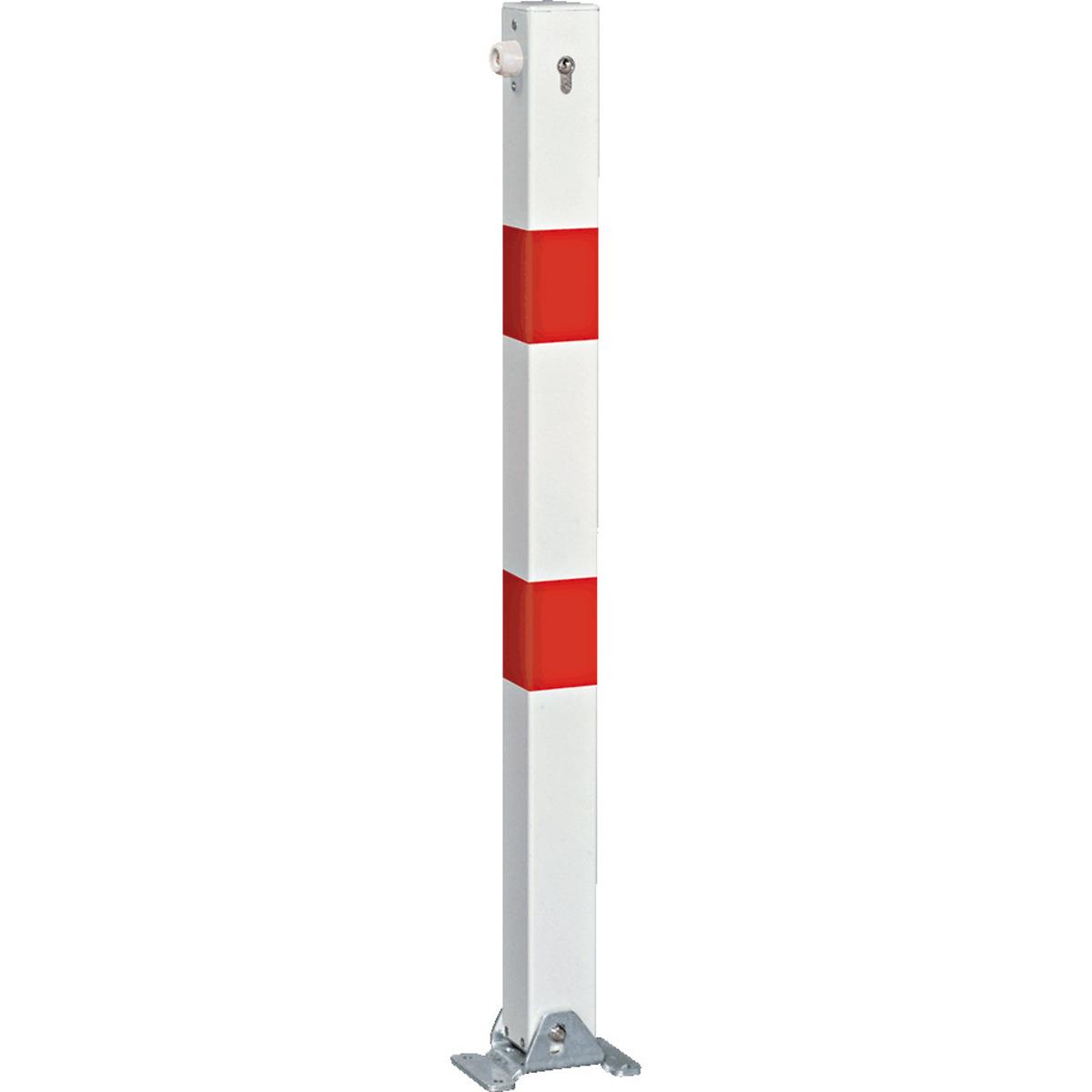Umklappbarer Absperrpfosten Rom zum Sichern von Einfahrten, Parkplätzen oder Privatwegen, 2 rote Reflexstreifen für gute Sichtbarkeit auch im Dunkeln, Auflage mit Gummipuffer