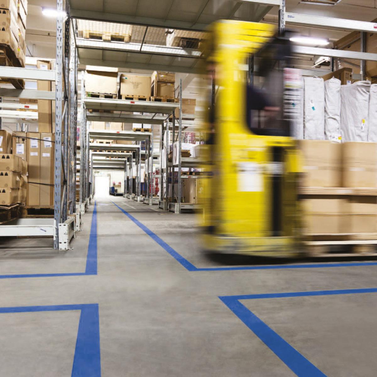 Bodenmarkierungsband in verschiedenen Farben zur Fahr- und Laufwegkennzeichnung. Ideal für lange, durchgehende Markierungen im innerbetrieblichen Bereich.