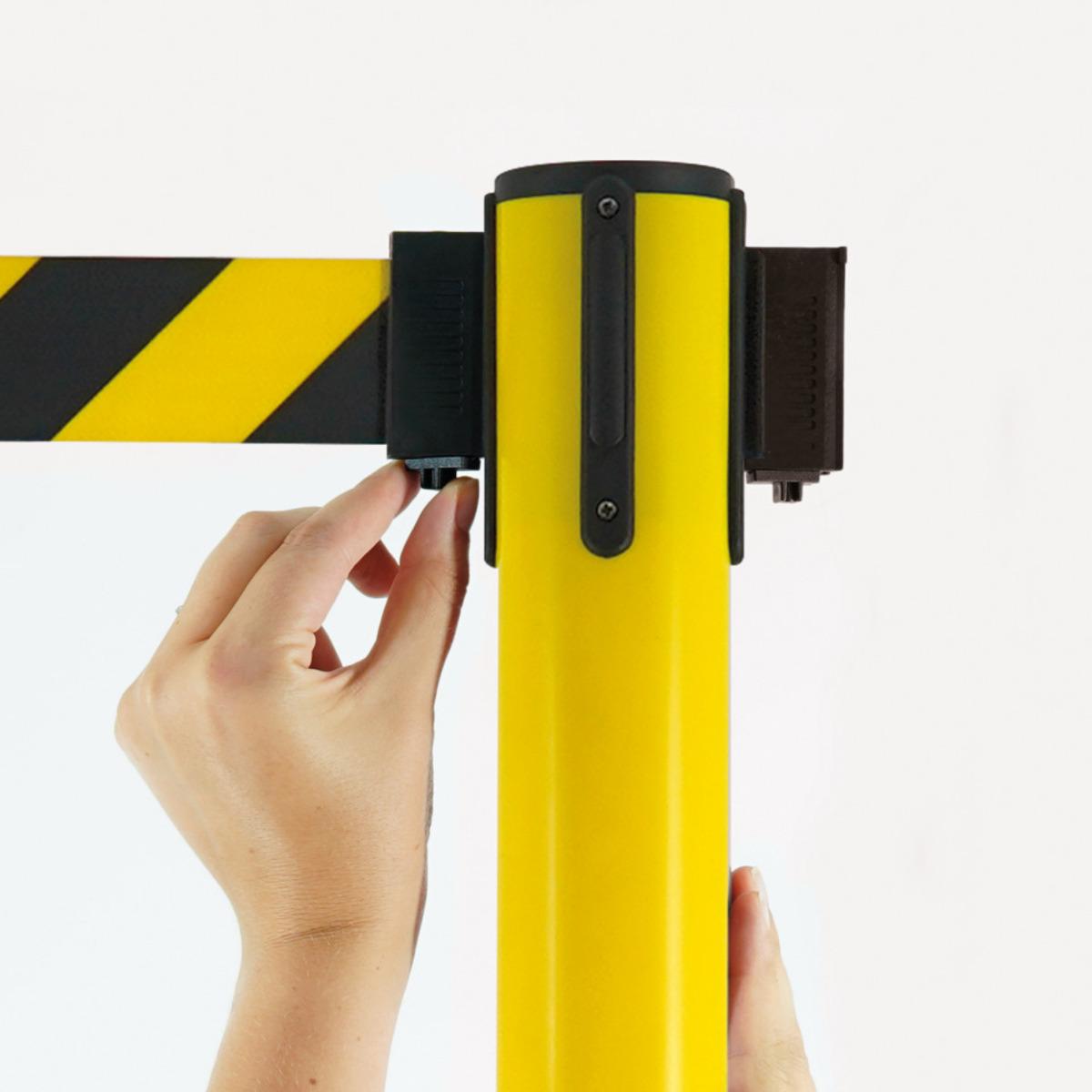 Auswahl: K.57 Gurtpfosten, gelb, Kunststoff, Gurt gelb/schwarz schraffiert, 50mm, 4m, 990mm