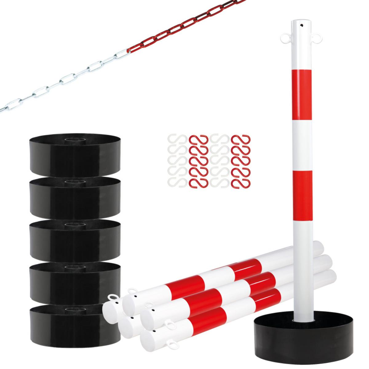 Auswahl: K.57 Kettenständer-Set MultiFILL, 6 Pfosten, 6 Füße, 10m Stahlk.rot/weiß, 20 S-Haken