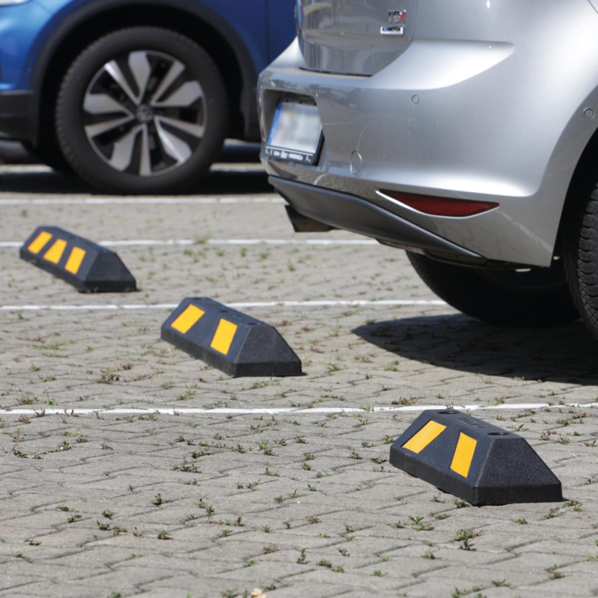 Der Parkbegrenzer zum Aufdübeln erleichtert das Einparken und eignet sich als seitliche oder frontale Begrenzung. Reflexstreifen sorgen für gute Sichtbarkeit, das robuste Material ist langlebig, öl-, temperatur- und UV-beständig. Die Lieferung umfasst Dübel, Schrauben und Unterlegscheiben.
