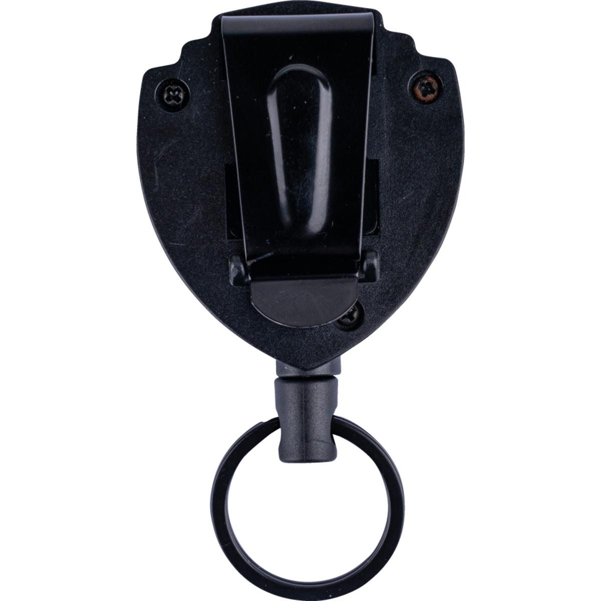 Schlüsselrolle mit Gürtelclip, Schlüsselring und automatischer Aufrollfunktion für den schnellen Rückzug.