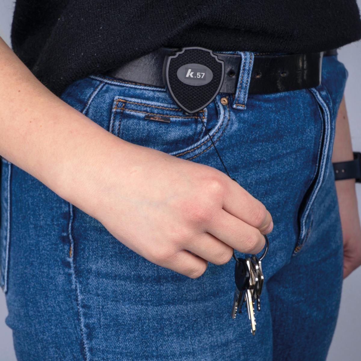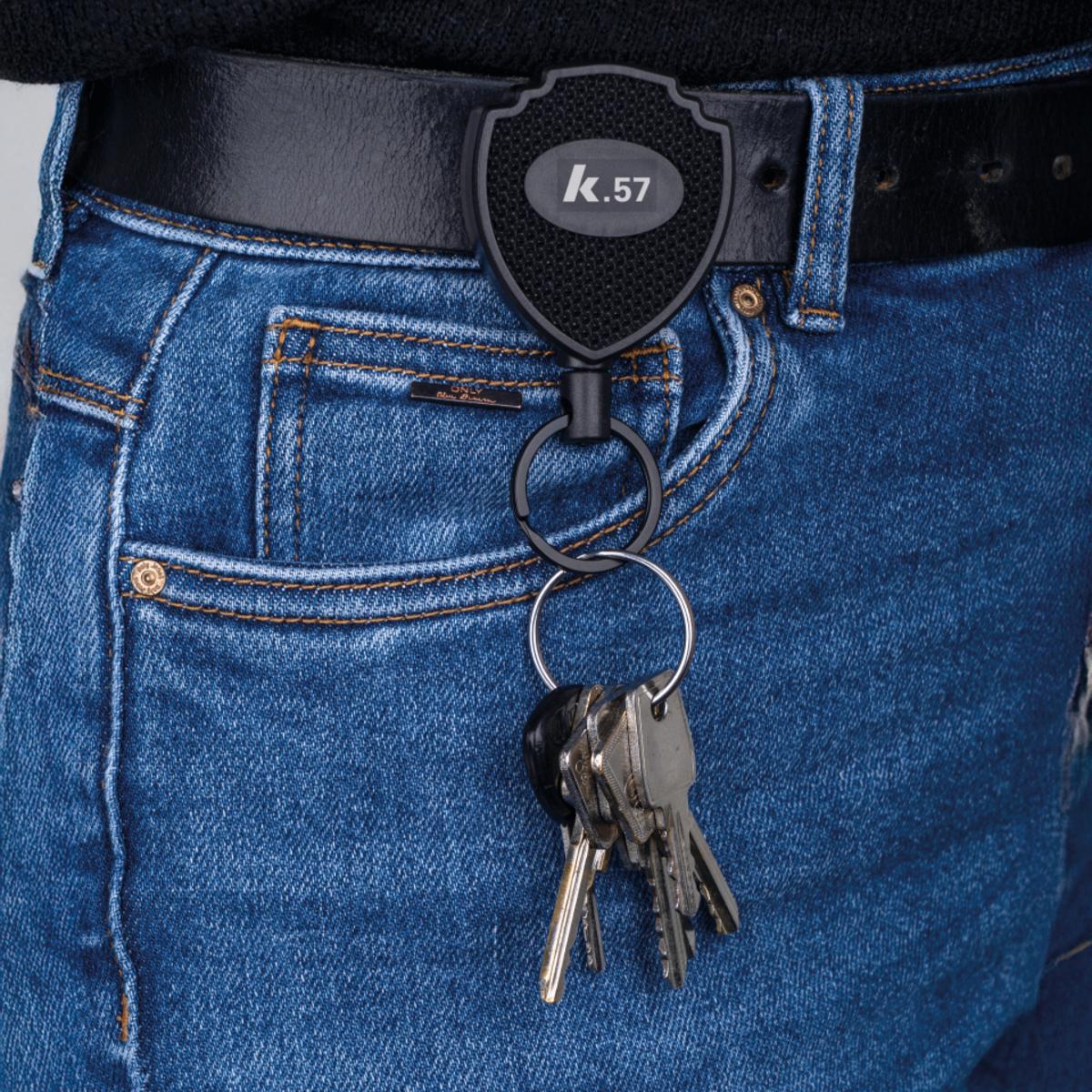 Auswahl: K.57 Schlüsselrolle, Federstahl-Gürtelclip, ABS-Kunststoff, Kevlarseil
