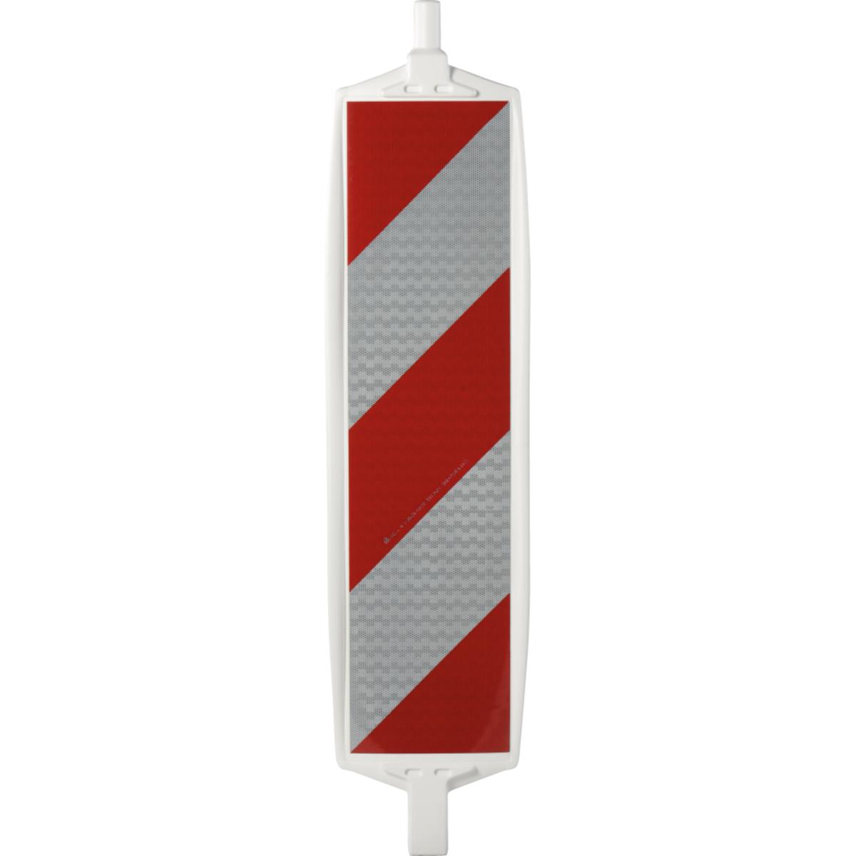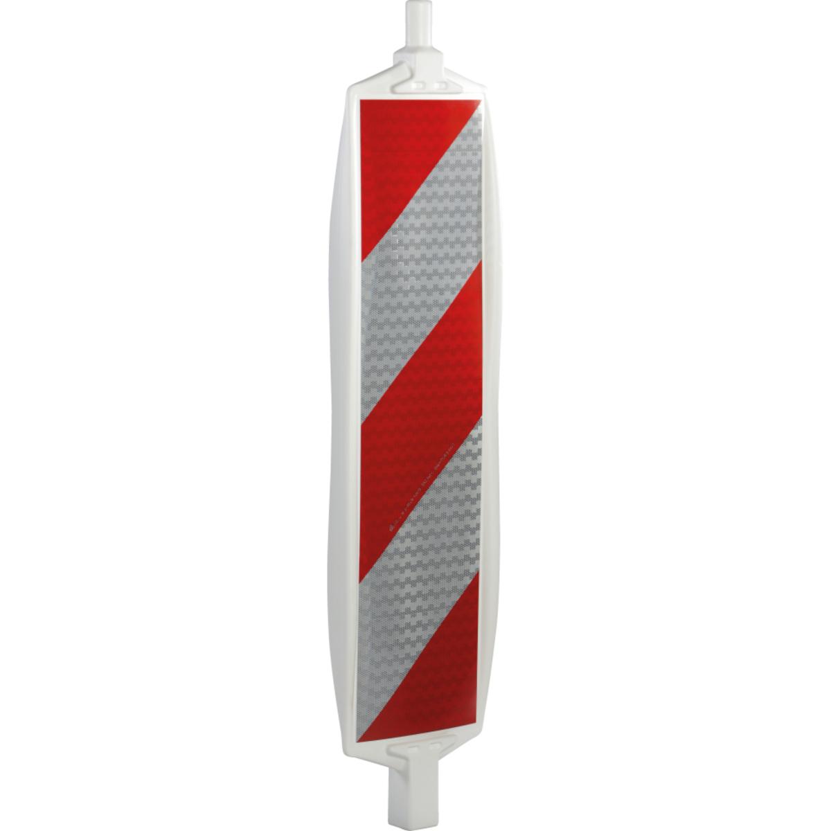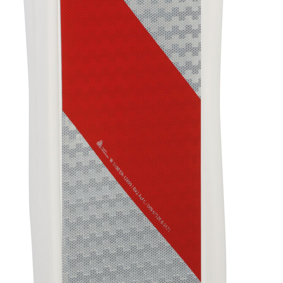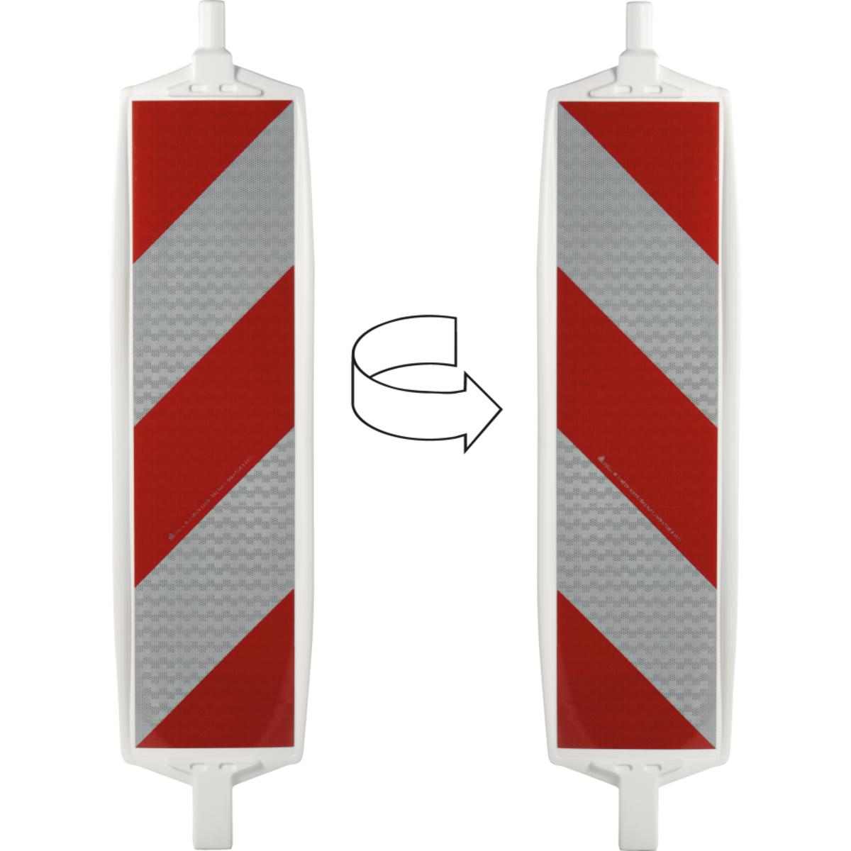 Sicherheitsleitbake rechts-/linksweisend, zweiseitig beklebt mit rot/weißer Folie, für den Einsatz auf dem Betriebsgelände, zum befristeten Absperren von Parkplätzen, Einfahrten und Gefahrenstellen.