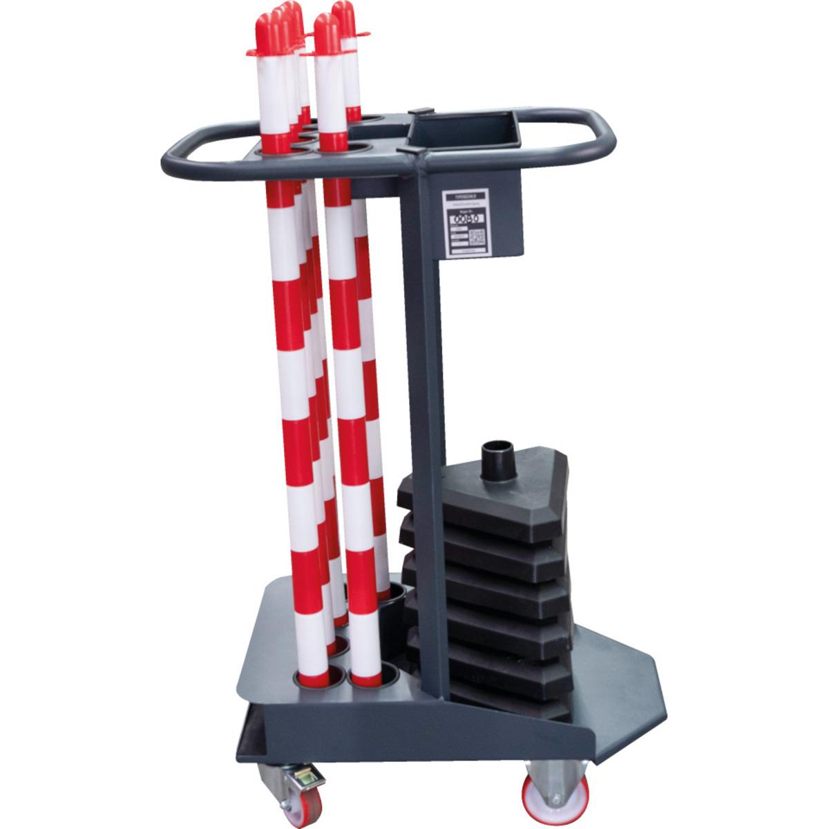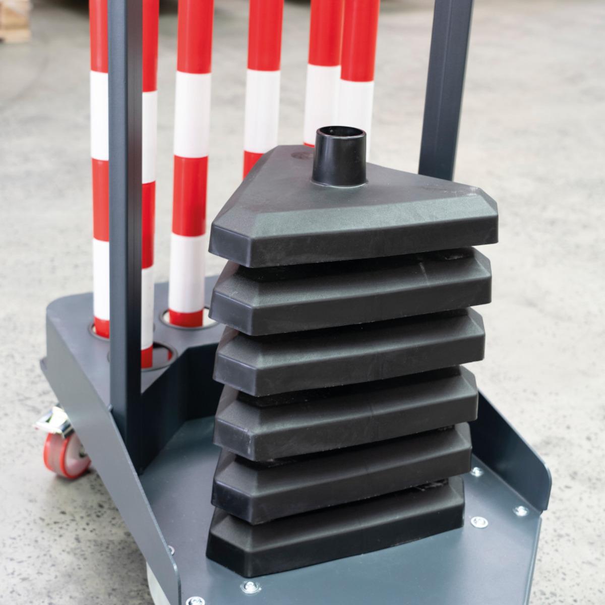K.57 Transportwagen-Set mit Maxi, Standfuß betongefüllt beinhaltet den Kettenpfosten-Wagen Caddie, K.57 Einzelkettenständer Maxi mit betongefüllten Standfüßen.