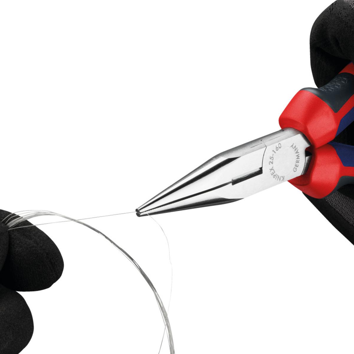 KNIPEX® Flachrundzange mit Schneide geeignet für feinere Greif- und Schneidarbeiten, auch an leicht bis mittelschwer zugänglichen Stellen.