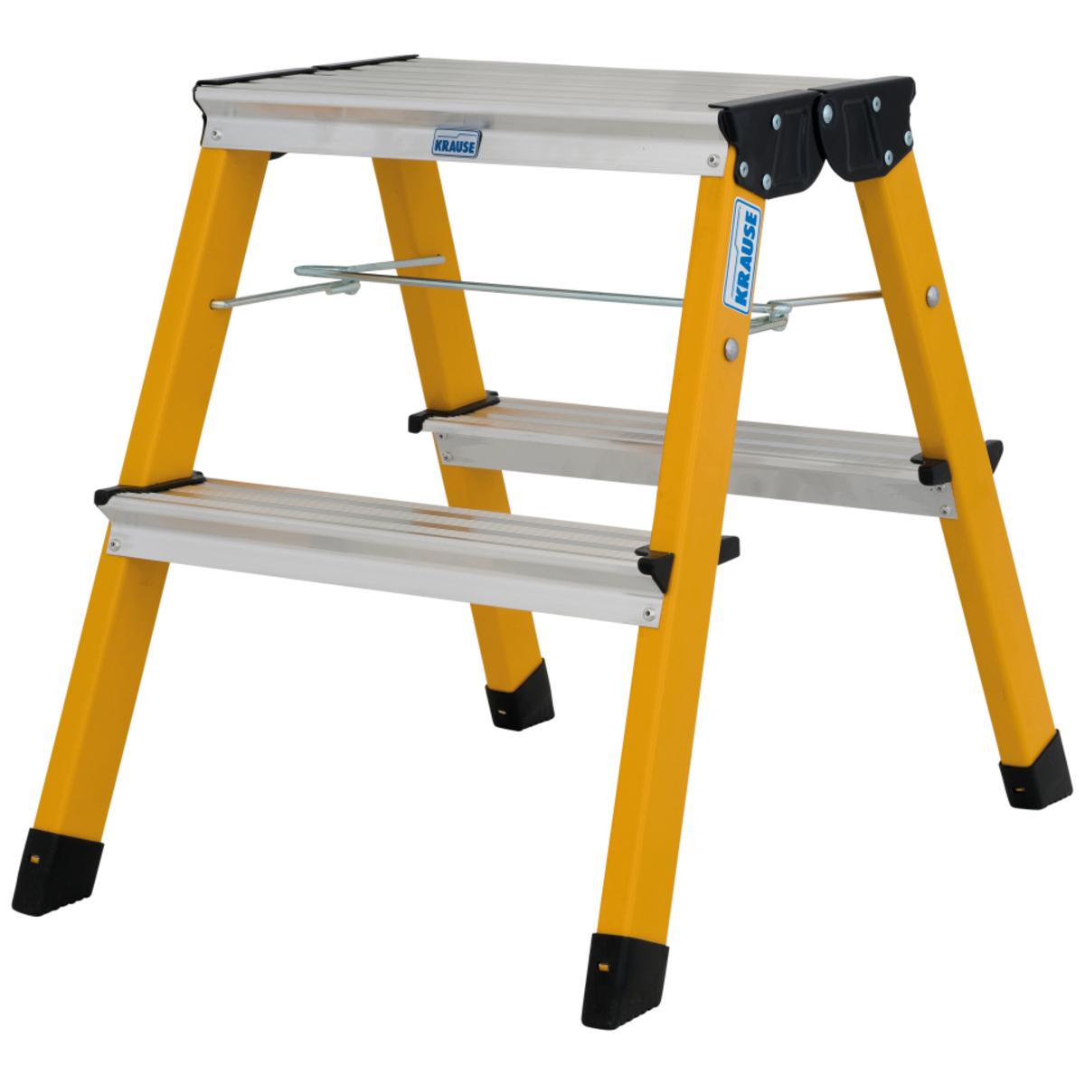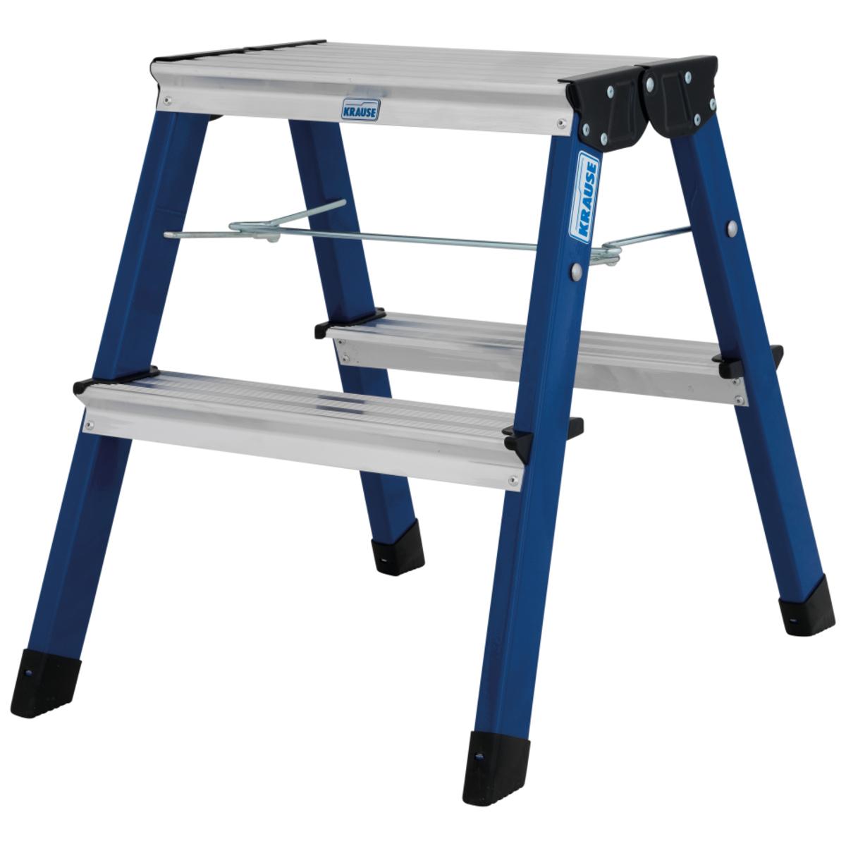 Der Tritt ist mit großzügiger Standfläche und robusten Gelenkverbindungen aus Metall ausgestattet. Dank integrierter Sicherung bleibt er beim Gebrauch zuverlässig stabil. Gleichzeitig ist er leicht und lässt sich platzsparend verstauen.
