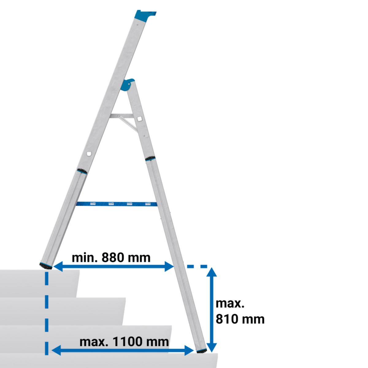 einseitig begehbar, robust, standsicher, stufenweise längenverstellbar, universell einsetzbar