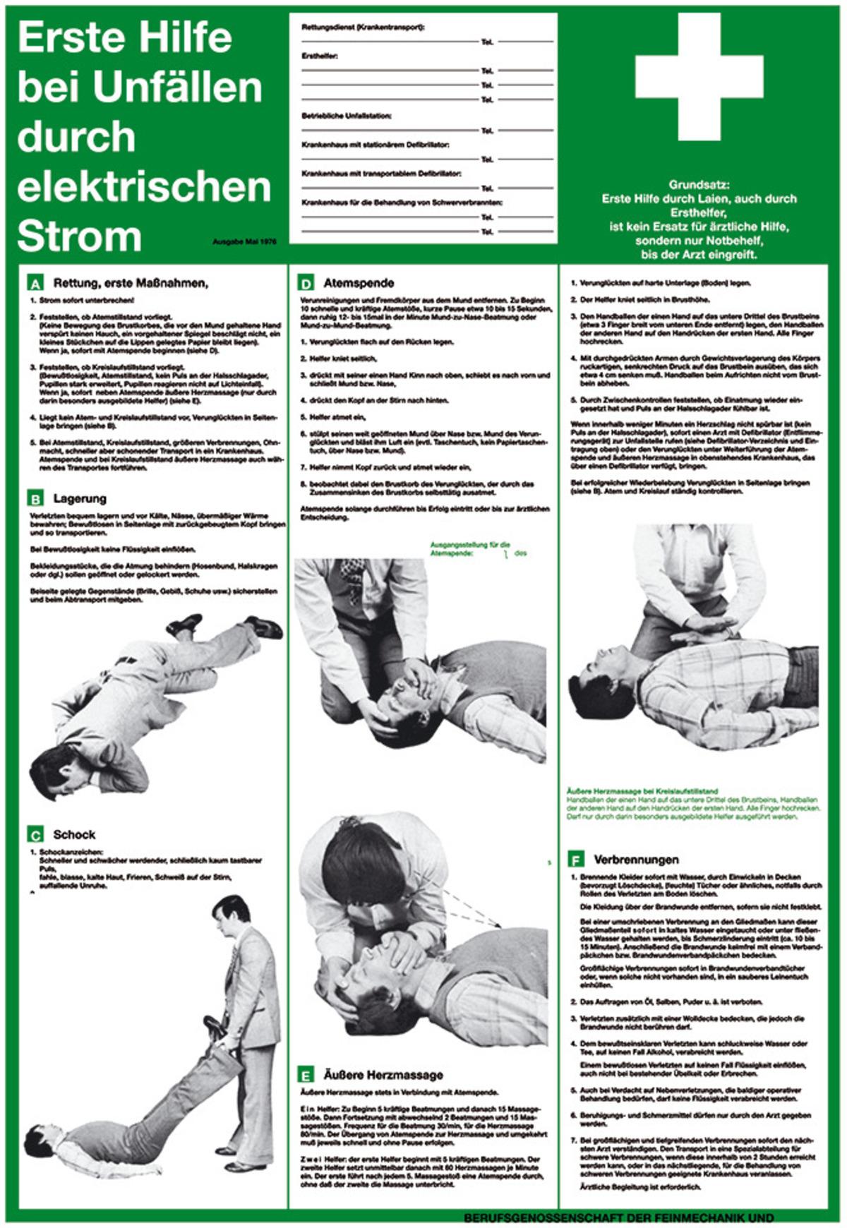 Auswahl: Aushang Erste Hilfe bei Unfällen durch elektrischen Strom, Kunststoff, 395x575mm