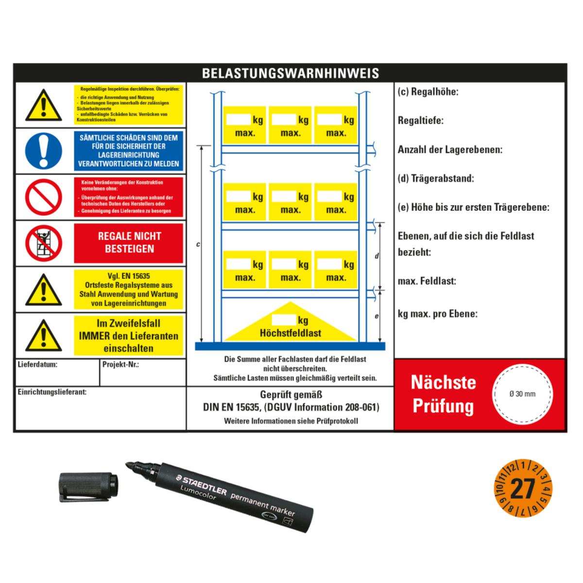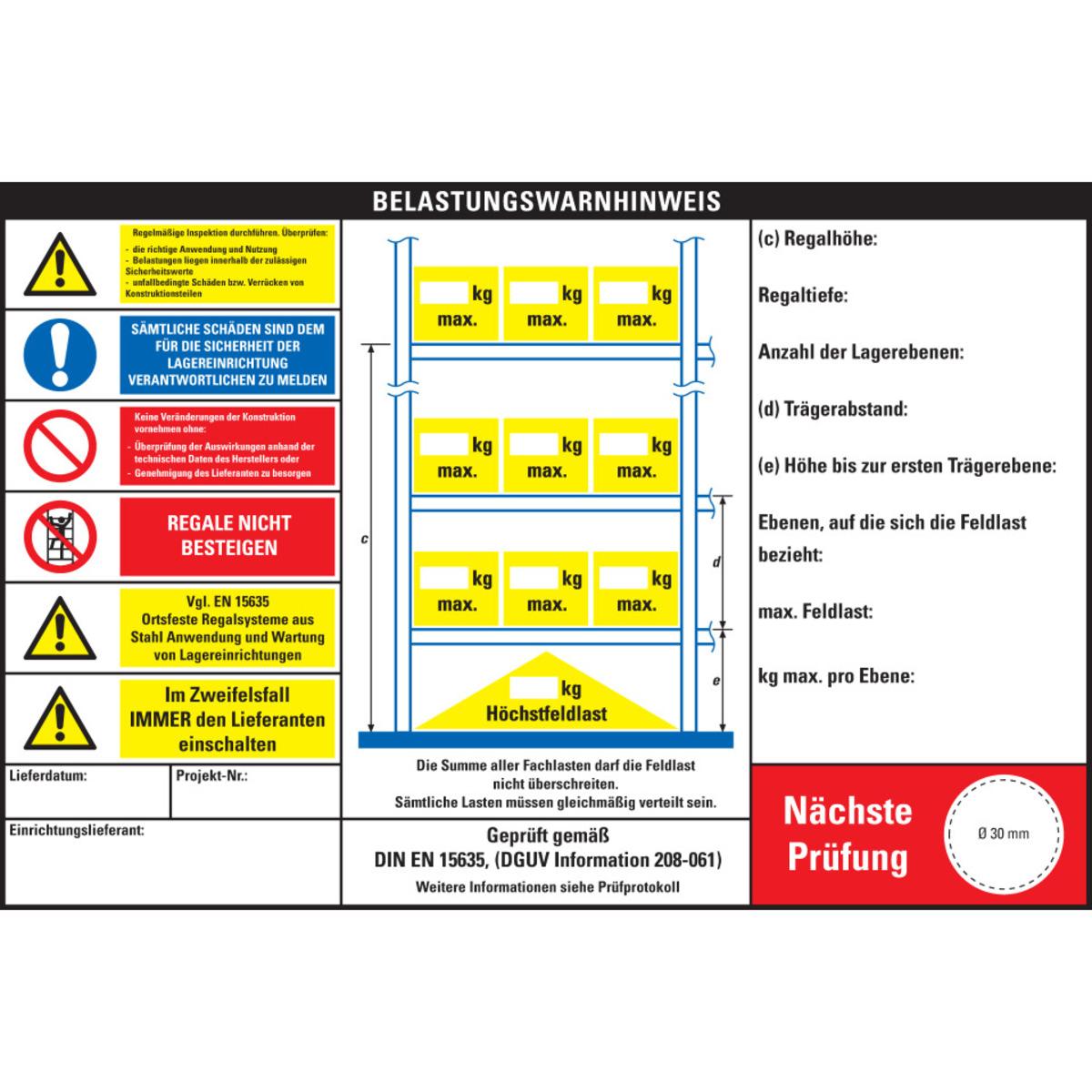 Auswahl: Belastungswarnhinweis f.Palettenregale, 3 Einh., DIN EN 15635, Kunststoff, 300x200mm