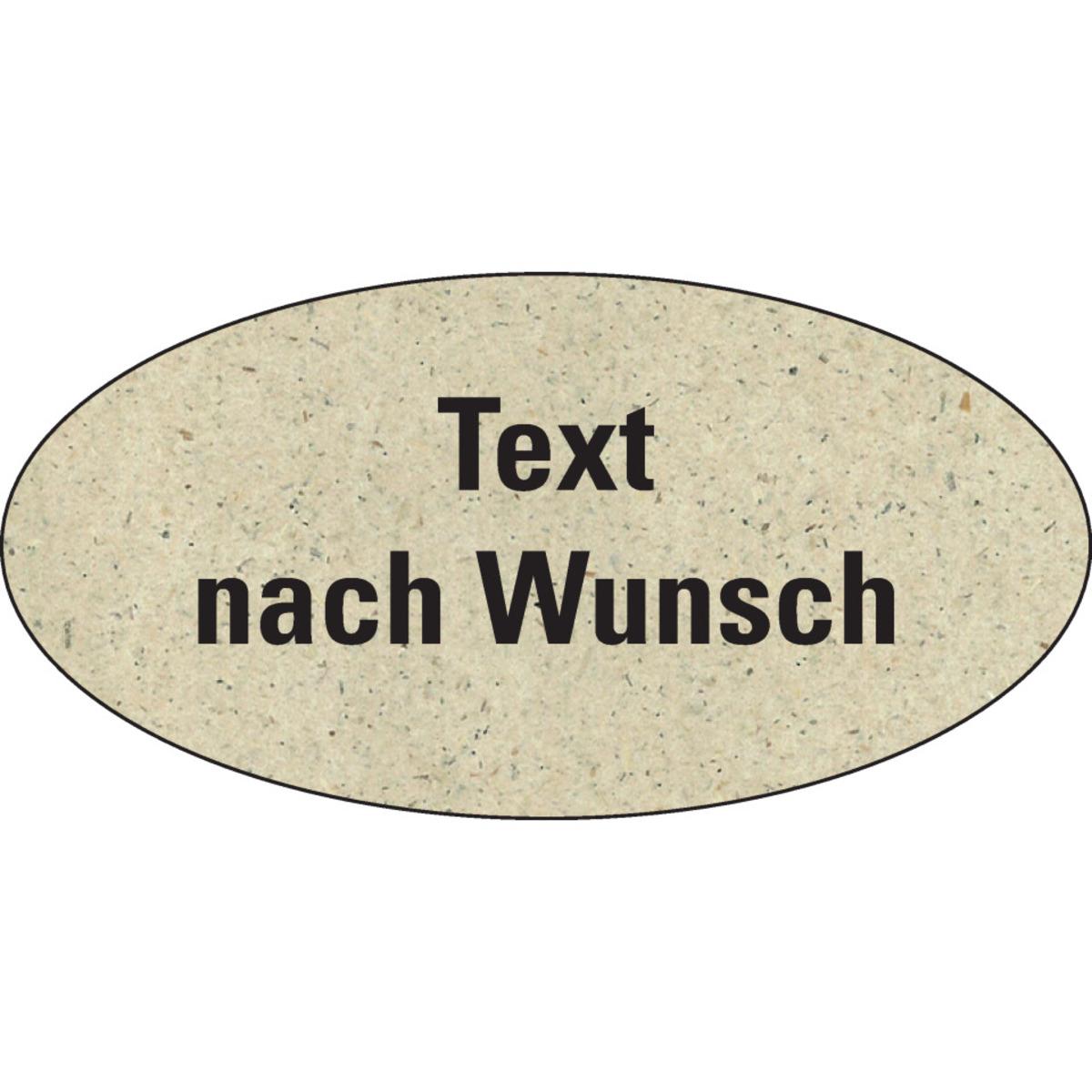 Auswahl: Etikett Text nach Wunsch, oval, Graspapier, selbstklebend, 60x30mm, 9/Bogen