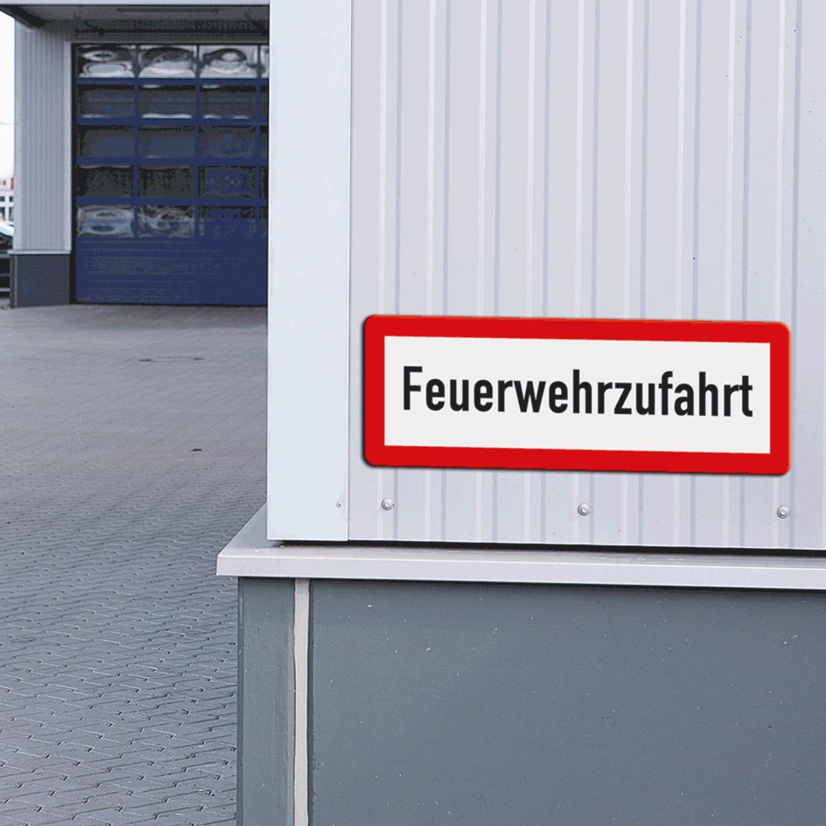 Das Feuerwehrschild "Feuerwehrzufahrt" gibt wichtige Verhaltensmaßregeln für den Alltag/Brandfall vor und erleichtert den professionellen Einsatzkräften die Orientierung auf dem Betriebsgelände.