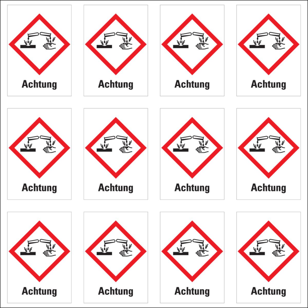 Auswahl: Gefahrensymbol Ätzwirkung GHS05, Achtung, Folie, 26x37mm, 12/Bogen