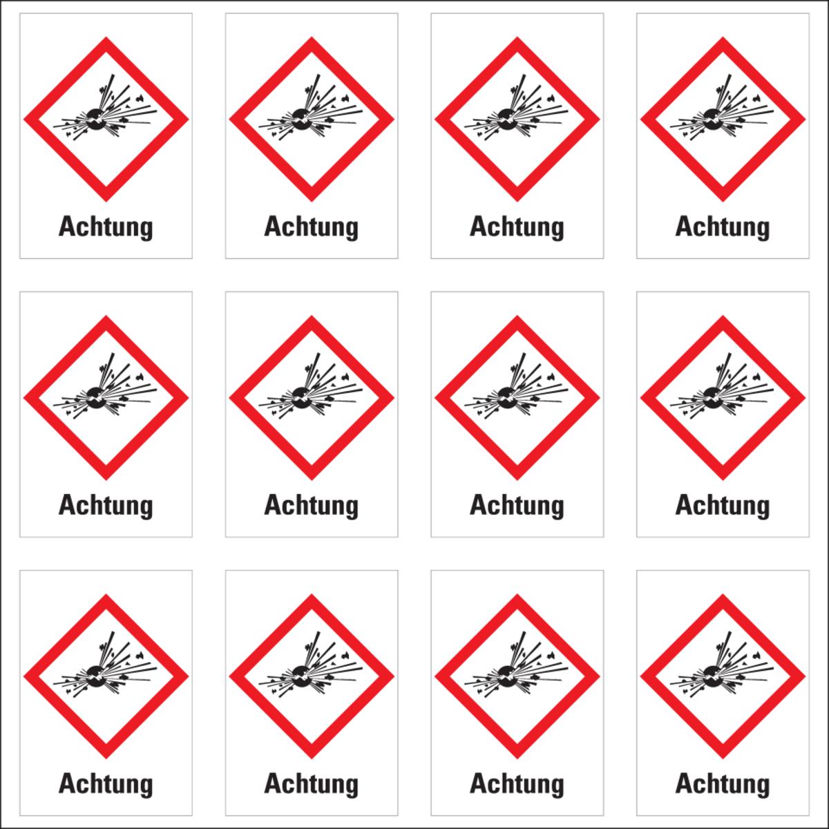Auswahl: Gefahrensymbol Explodierende Bombe GHS01, Achtung, Folie, 26x37mm, 12/Bogen