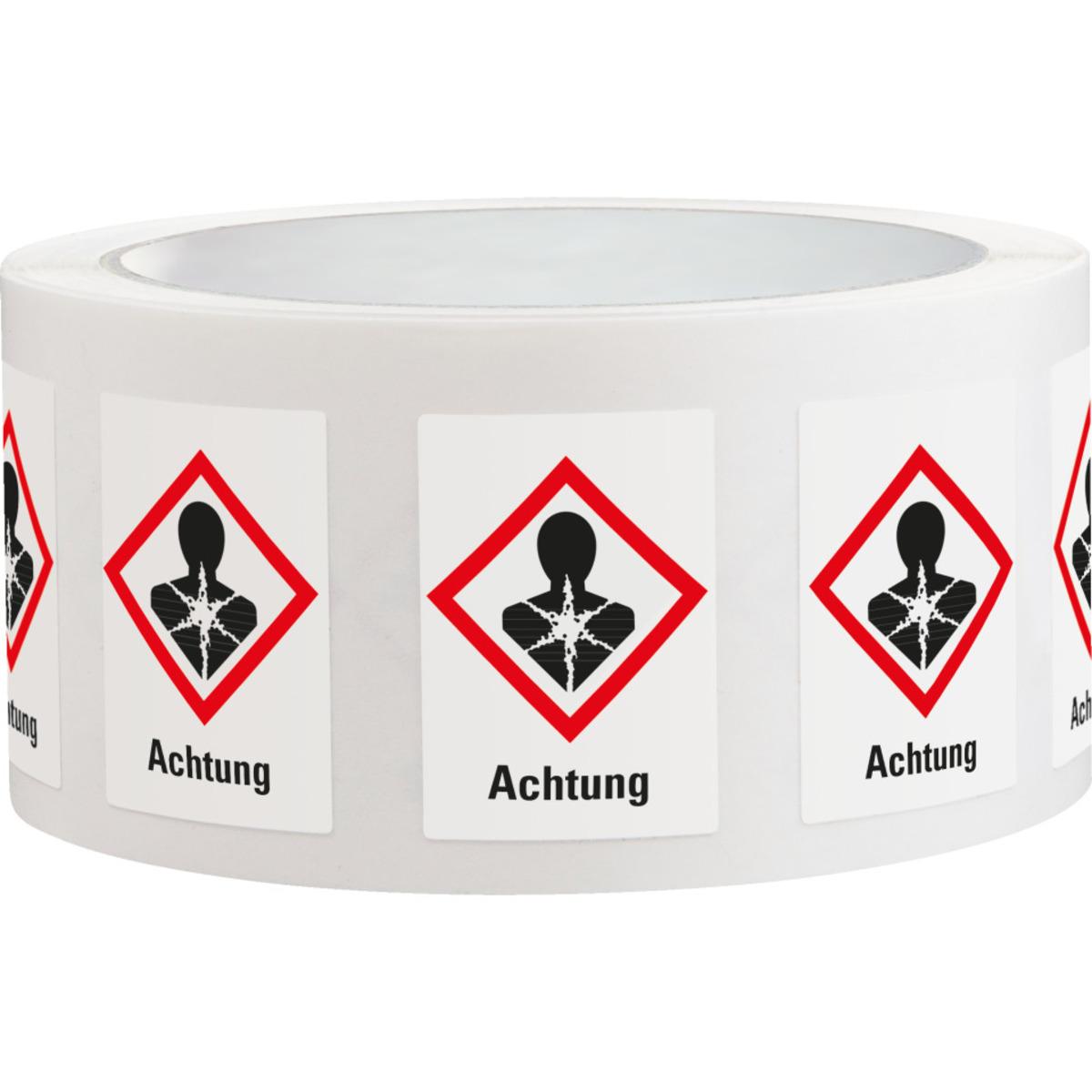 Auswahl: Gefahrensymbol Gesundheitsgefahr GHS08, Achtung, Folie, 26x37mm, 500/Rolle