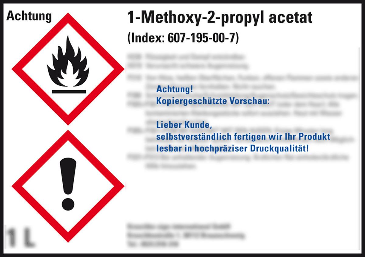 KSIGN Gefahrstoffetikett Text und Symbol nach Wunsch 1-Methoxy-2-propyl acetat