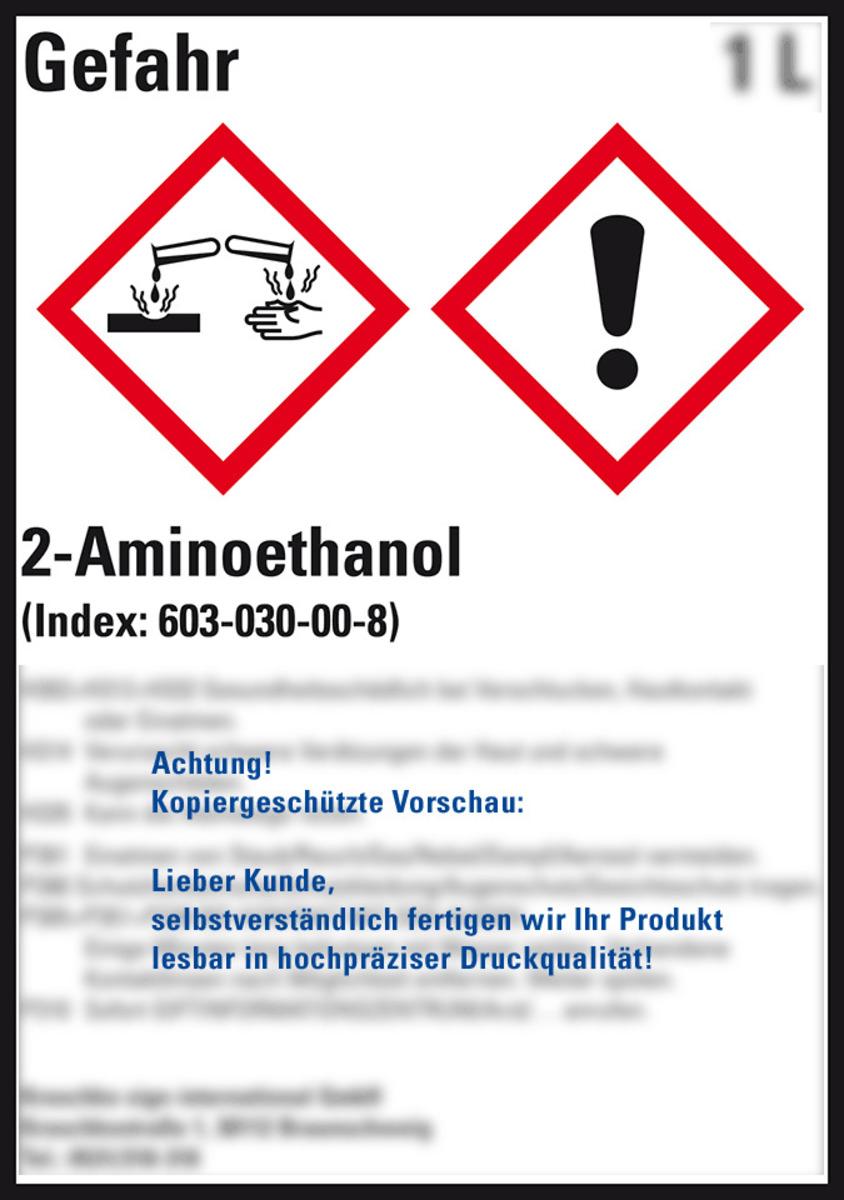 Auswahl: Gefahrstoffetikett 2-Aminoethanol, nach Wunsch, GefStoffV/GHS/CLP, Folie, 52x74mm, 10/Bogen