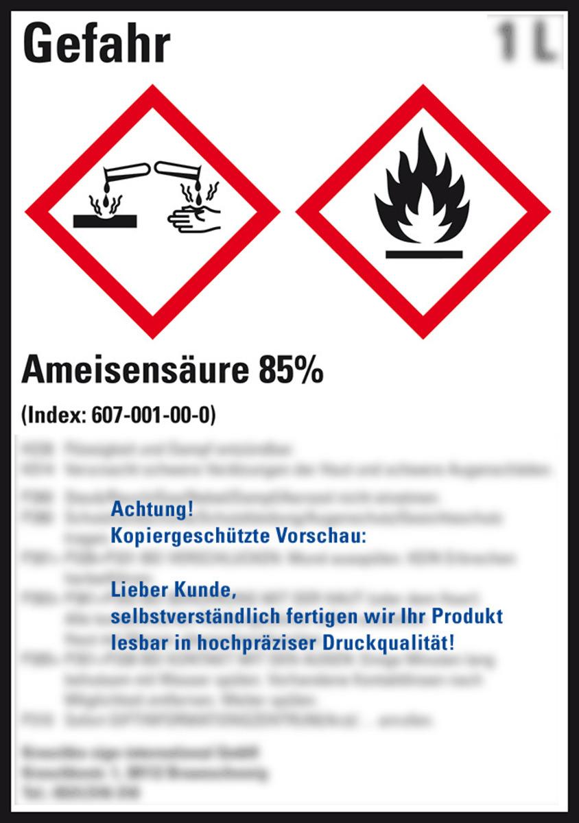 KSIGN Gefahrstoffetikett Text und Symbol nach Wunsch Ameisensäure 85 %
