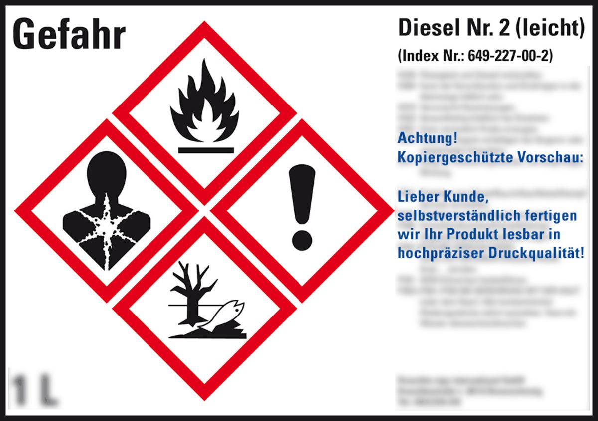 KSIGN Gefahrstoffetikett Text und Symbol nach Wunsch Diesel No. 2 (leicht)