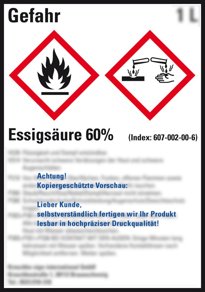 KSIGN Gefahrstoffetikett Text und Symbol nach Wunsch Essigsäure 60 %
