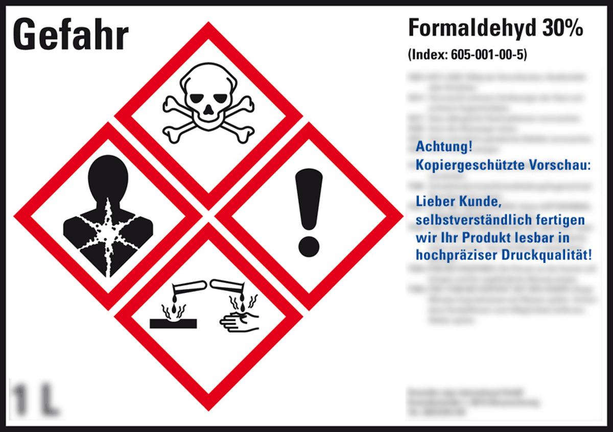 Auswahl: Gefahrstoffetikett Formaldehyd 30%, nach Wunsch, GefStoffV/GHS/CLP, Folie, 105x74mm, 8/Bogen