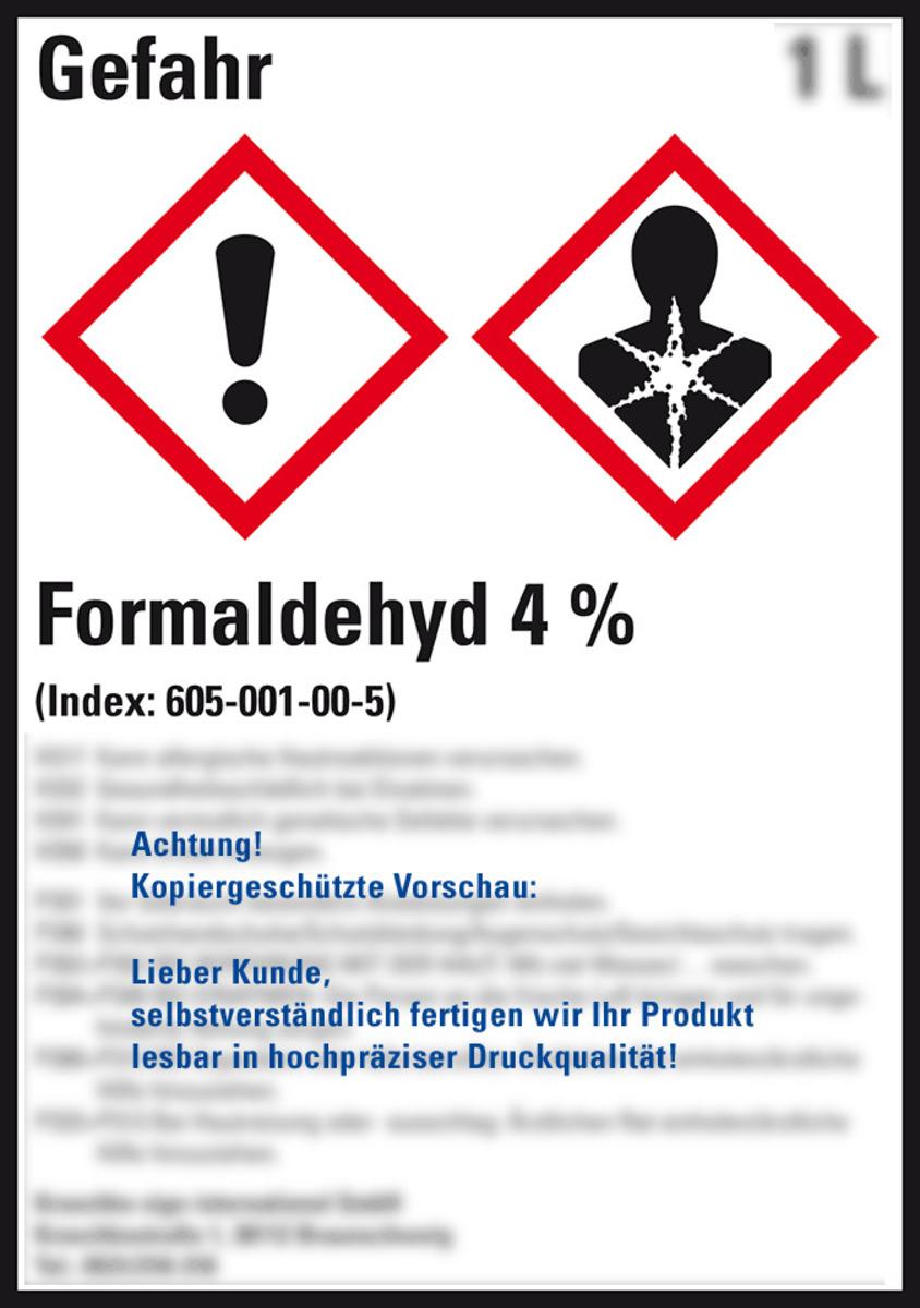 KSIGN Gefahrstoffetikett Text und Symbol nach Wunsch Formaldehyd 4 %