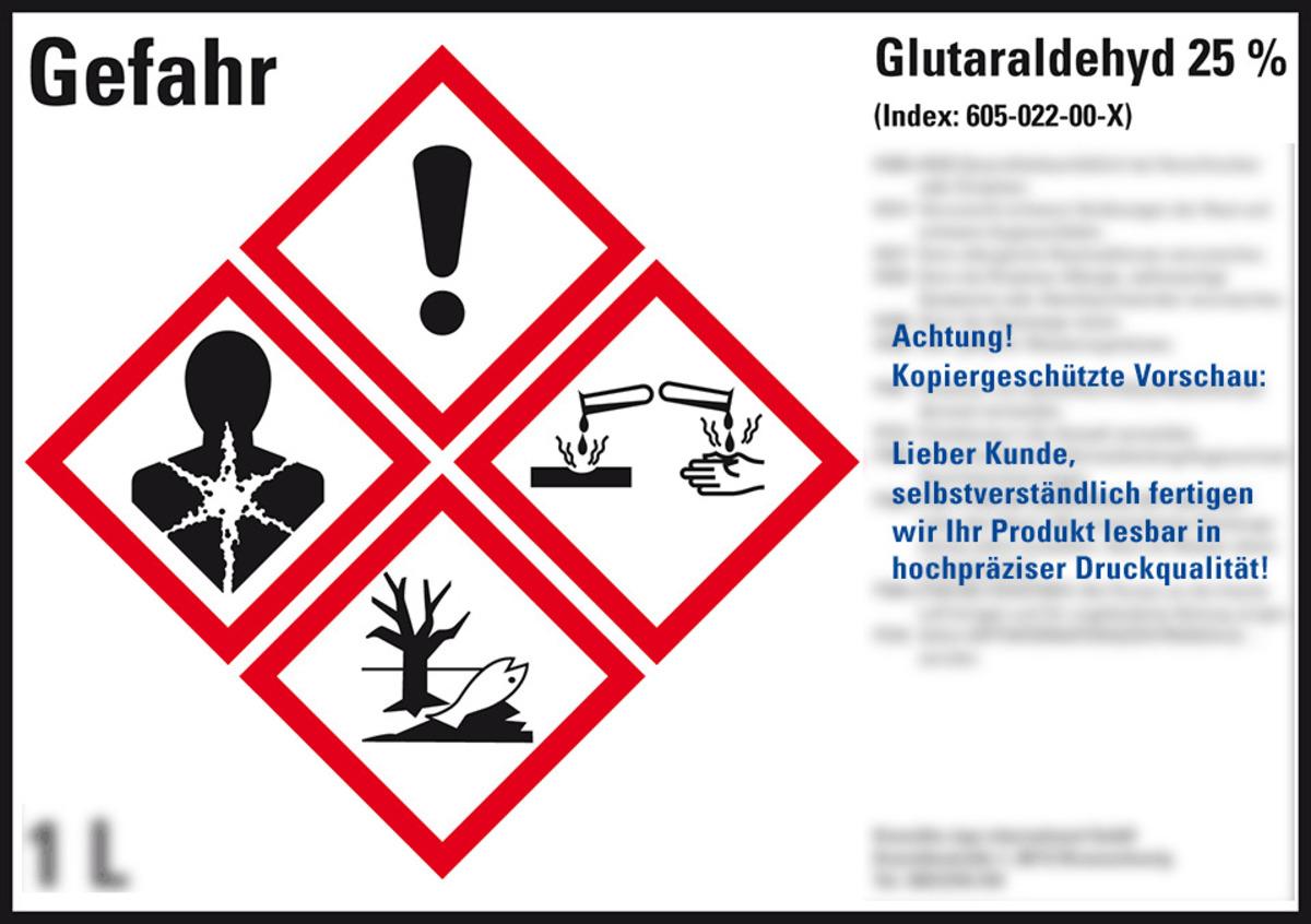 KSIGN Gefahrstoffetikett Text und Symbol nach Wunsch Glutaraldehyd 25 %