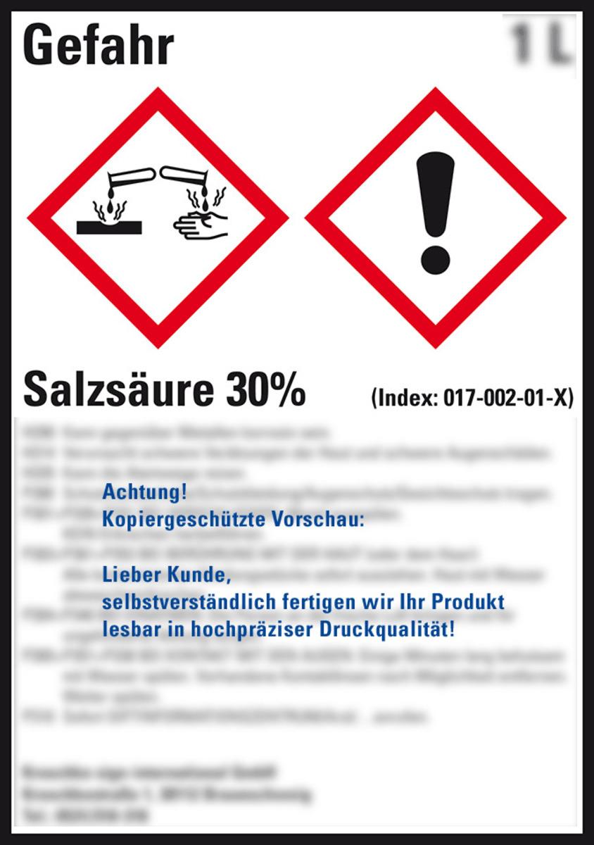 KSIGN Gefahrstoffetikett Text und Symbol nach Wunsch Salzsäure 30 %