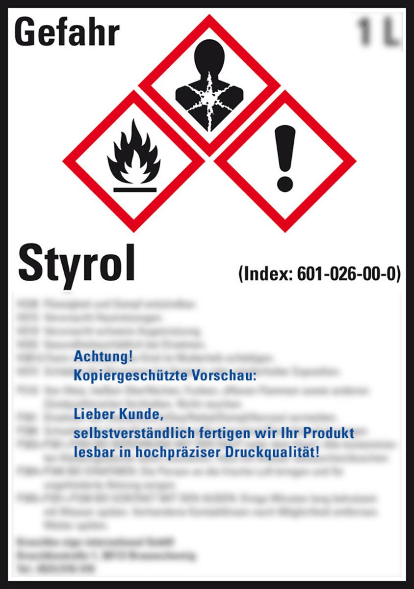 KSIGN Gefahrstoffetikett Text und Symbol nach Wunsch Styrol