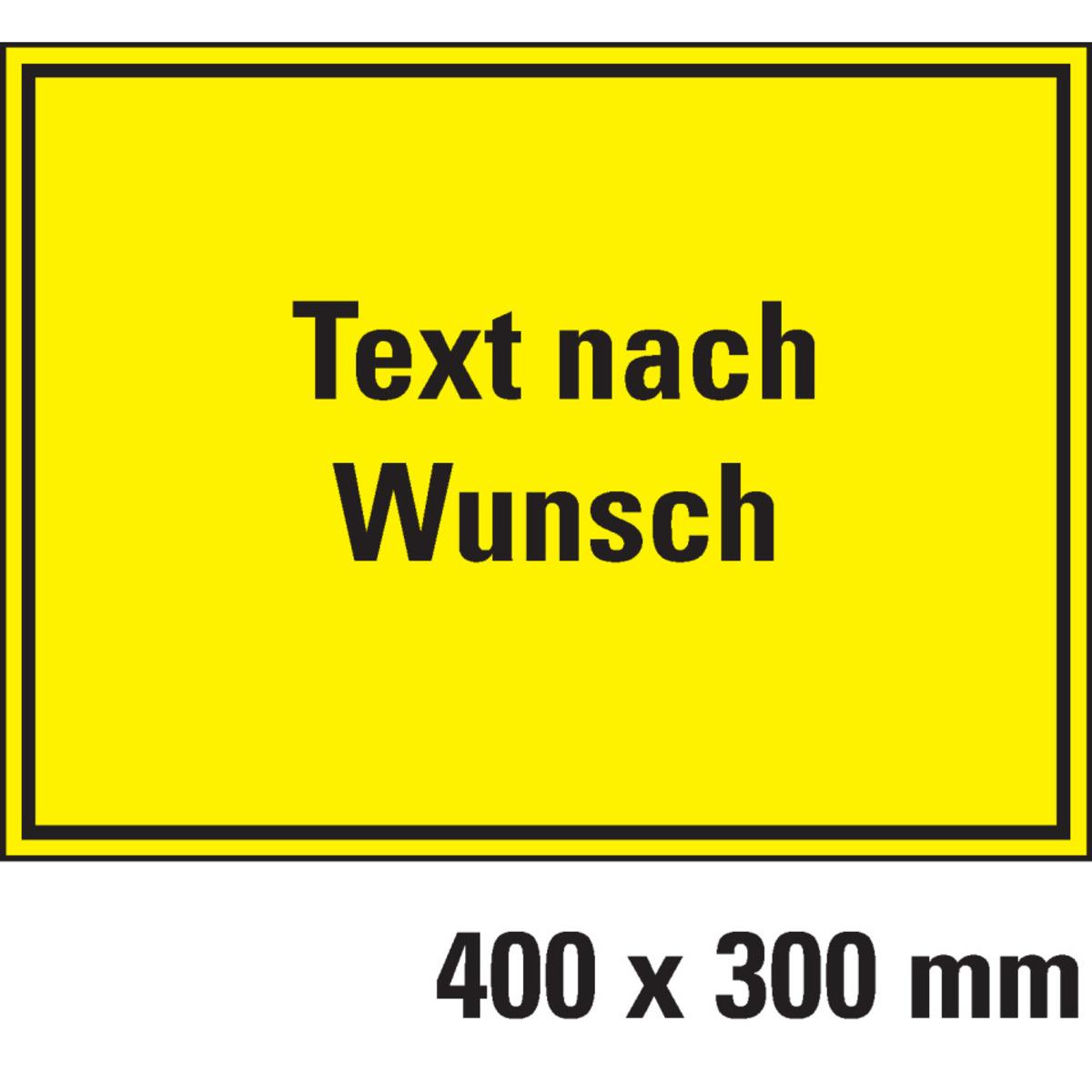 Auswahl: Hinweisschild, Text nach Wunsch, gelb/schwarz, Kunststoff, 400x300mm