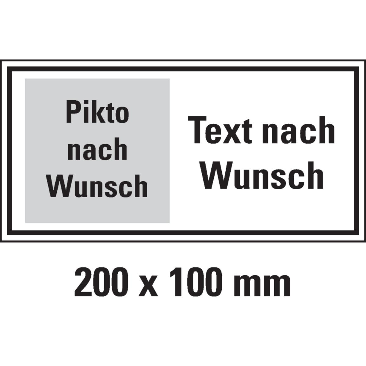 Auswahl: Hinweisschild, 1 Pikto KennV/ÖNORM/ISO links/Text nach Wunsch. rechts, Folie, 200x100mm