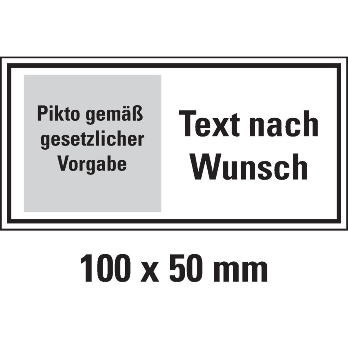 Auswahl: Hinweisschild, 1 Pikto KennV/ÖNORM/ISO links/Text nach Wunsch. rechts, Folie, 100x50mm