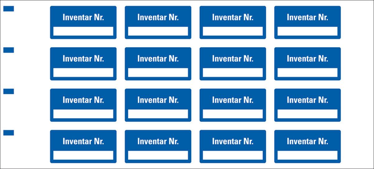 Auswahl: Inventaretikett Inventar-Nr., blau, Dokumentenfolie, Spezialkleber, 40x20mm, 16/Bogen