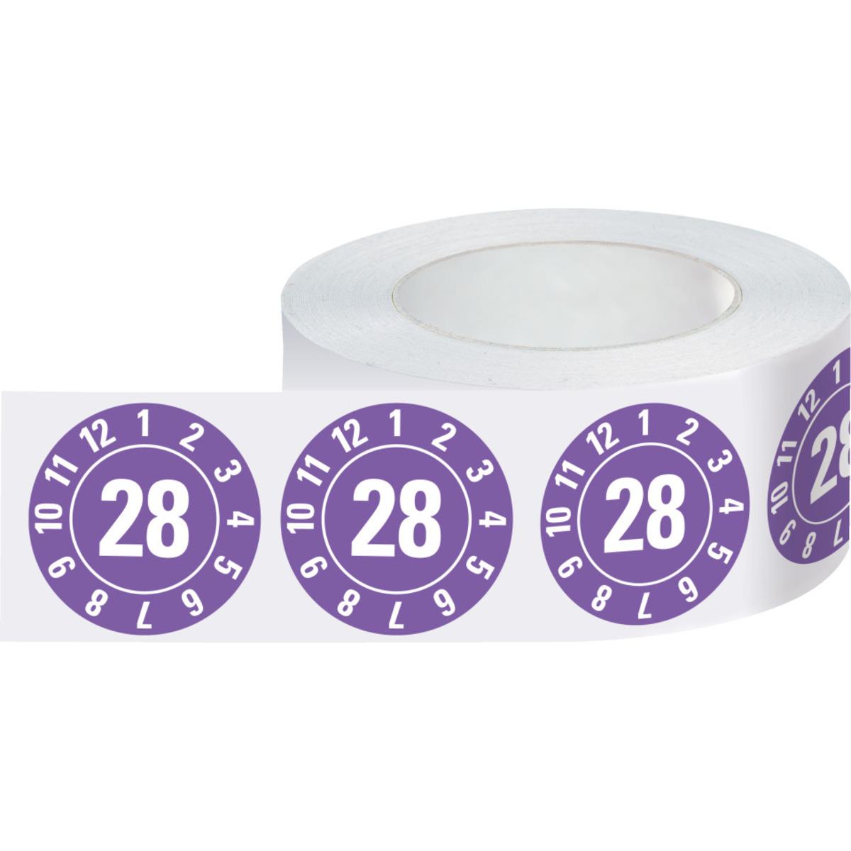 Auswahl: Prüfplakette 28, violett, Folie, ablösbar, Ø 10mm, 1000/Rolle