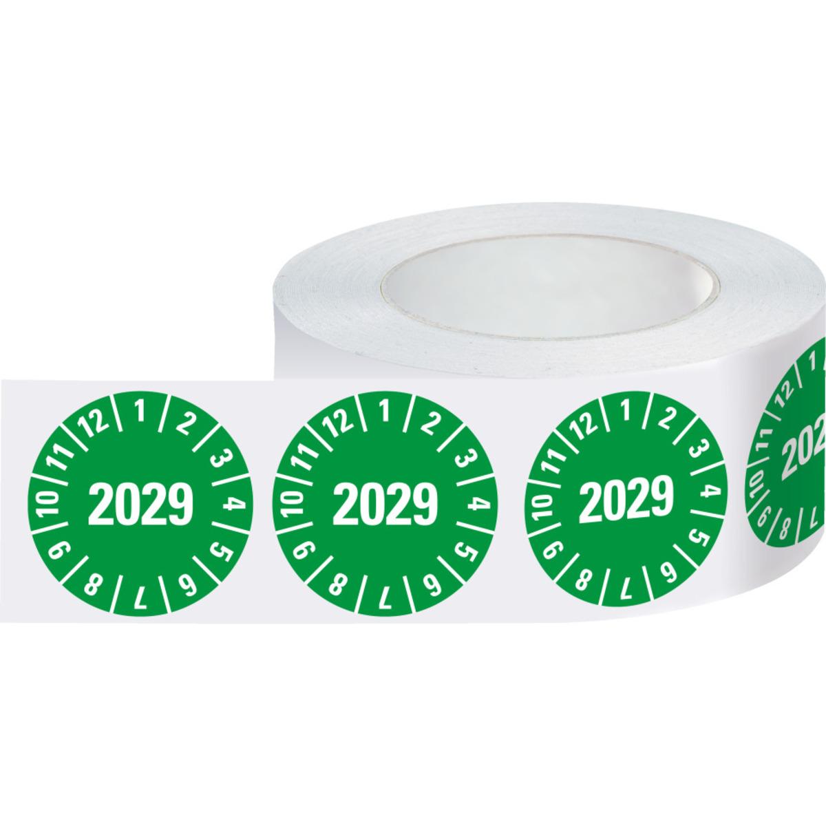 Auswahl: Prüfplakette 2029, grün, Folie, ablösbar, Ø 15mm, 1000/Rolle