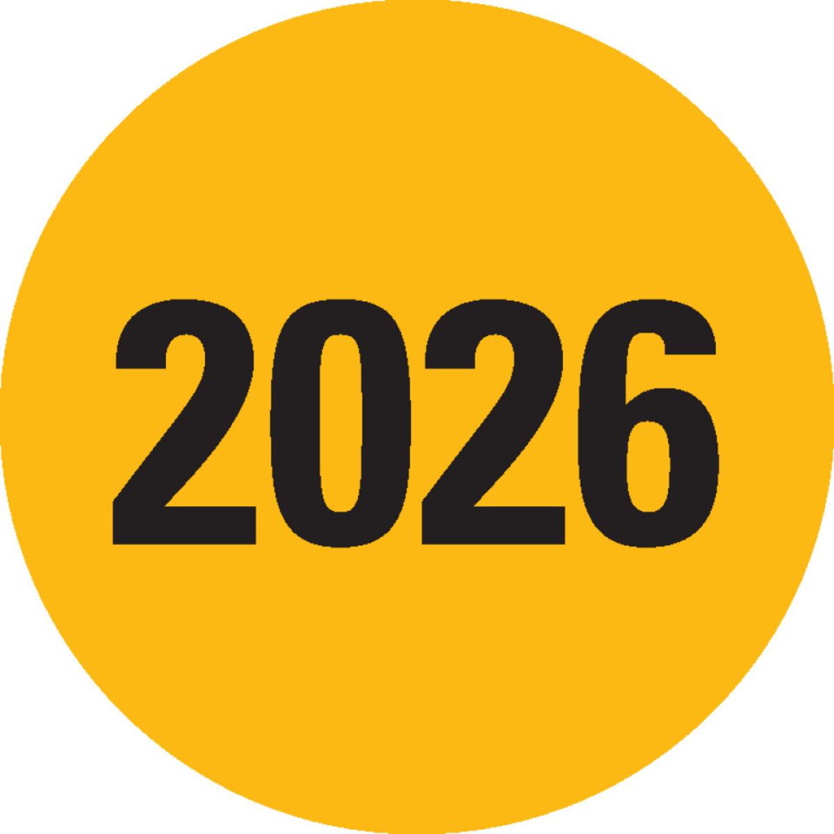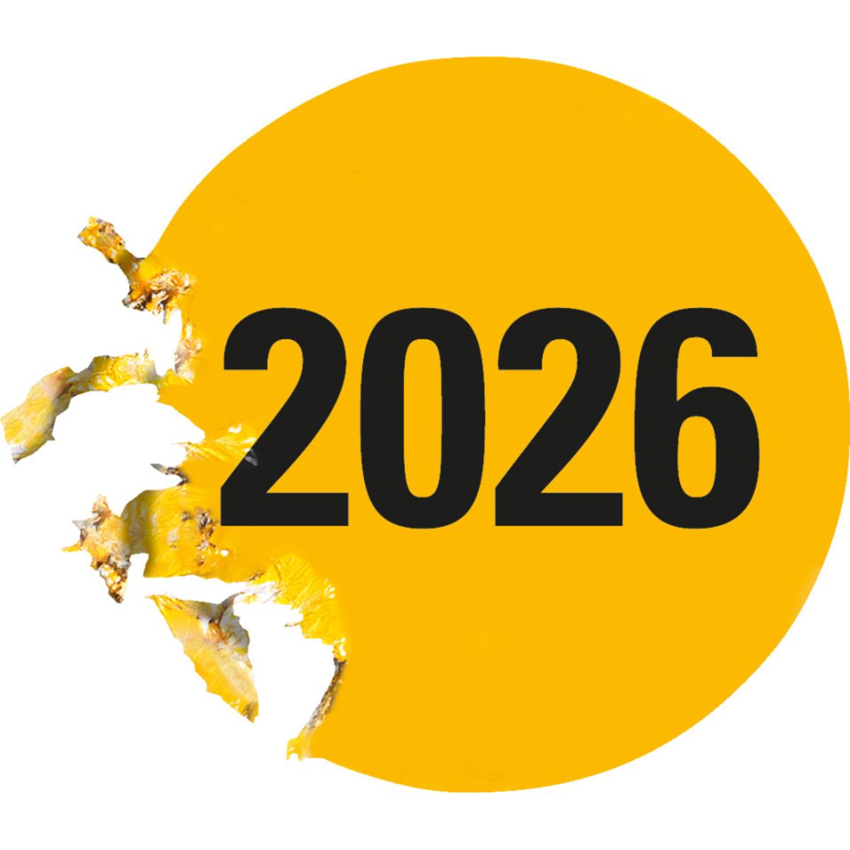Auswahl: Prüfplakette 2026, für Prüfnachweise, gelb, Dokumentenfolie, Ø20mm, 36/Bogen