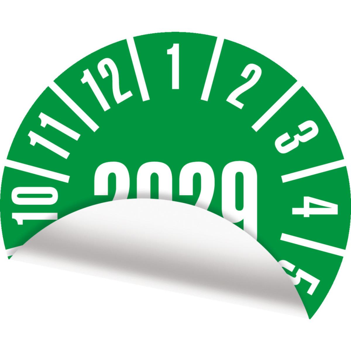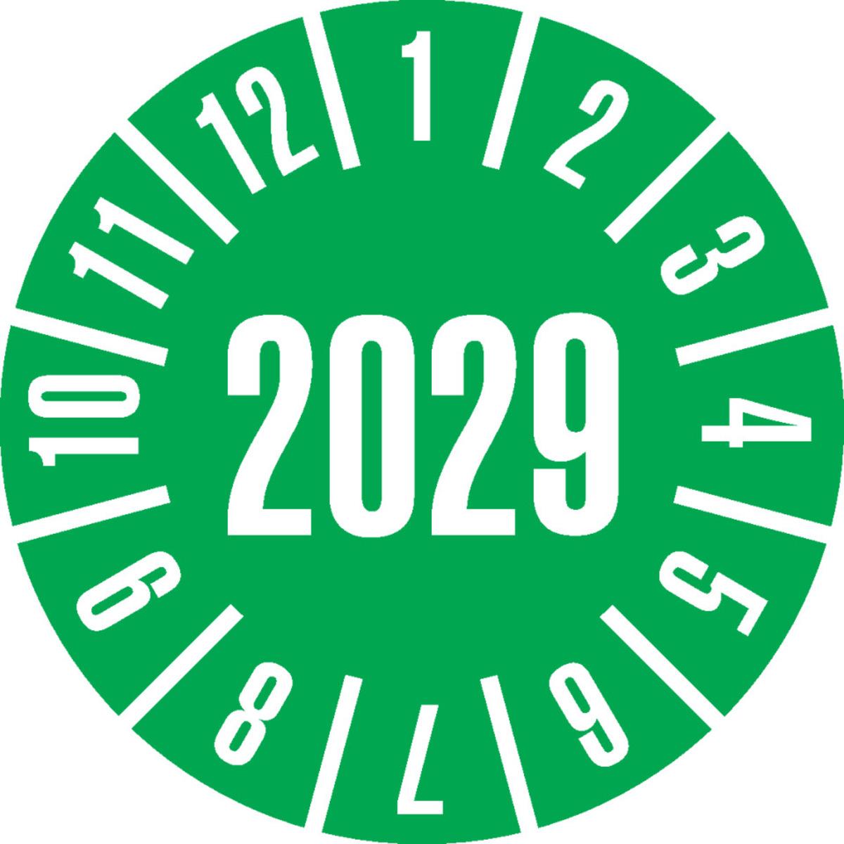 Auswahl: Jahresprüfplakette 2029, grün, Cellulose-Folie, selbstkl., Ø 30mm, 18/Bogen