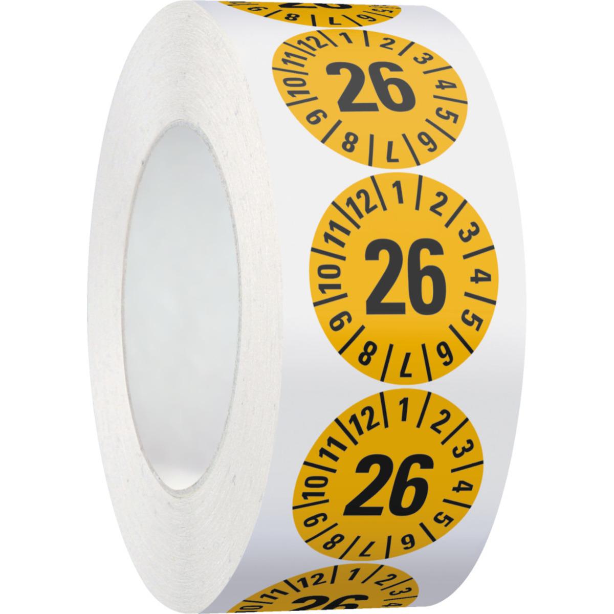 Auswahl: Prüfplakette 26, gelb, Folie, ablösbar, Ø 35mm, 500/Rolle