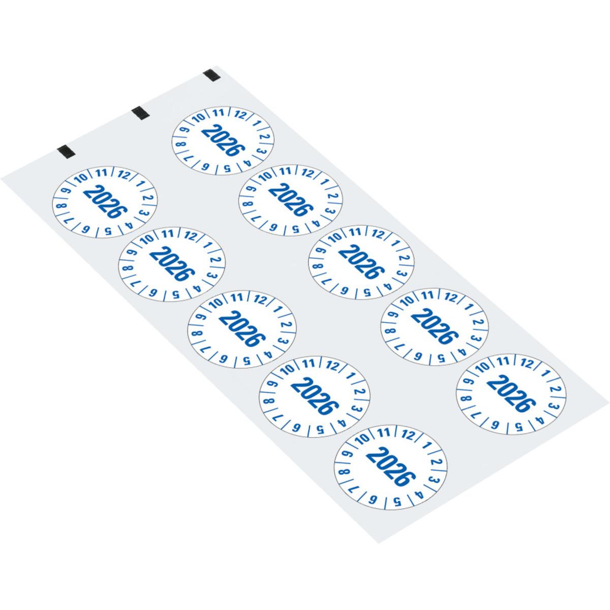 Auswahl: Prüfplakette 2026, weiß, Folie, m.Spezialkl., Oberflächenschutz, Ø 35mm, 10/Bogen