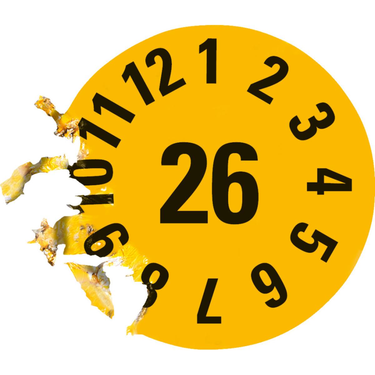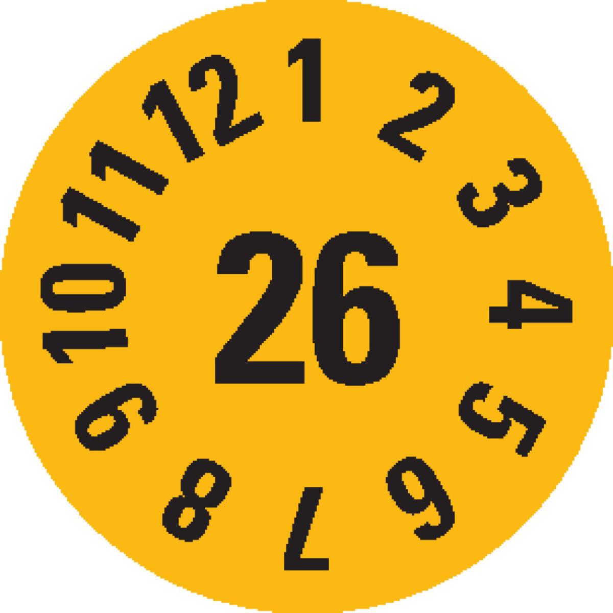 Auswahl: Prüfplakette 26, gelb, Dokumentenfolie, selbstklebend, Ø 8mm, 180/Bogen