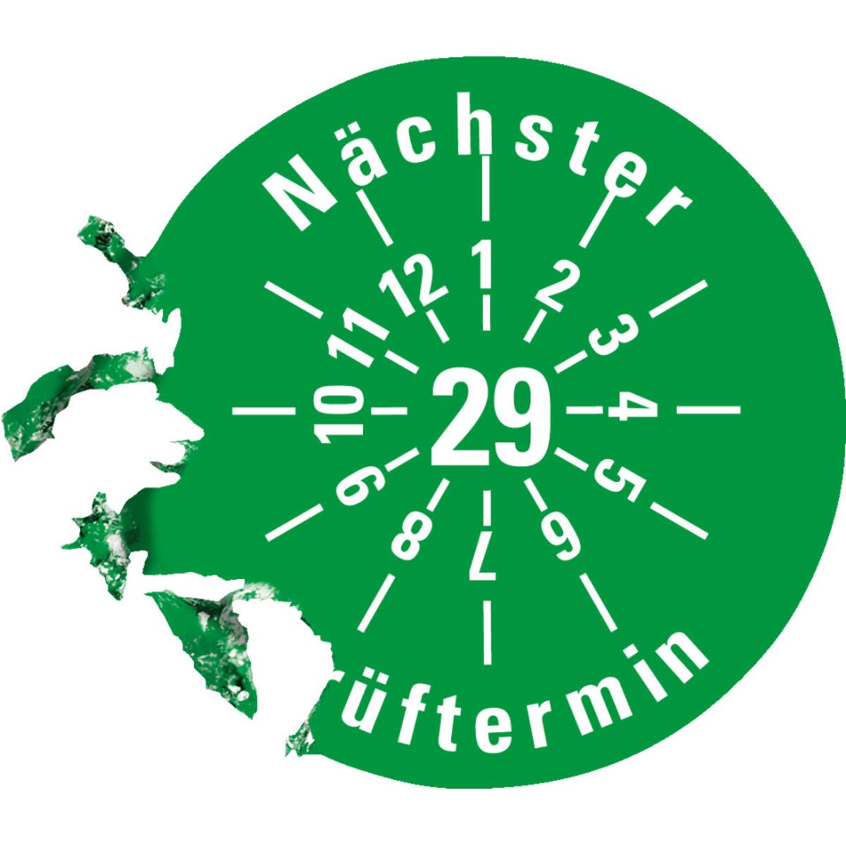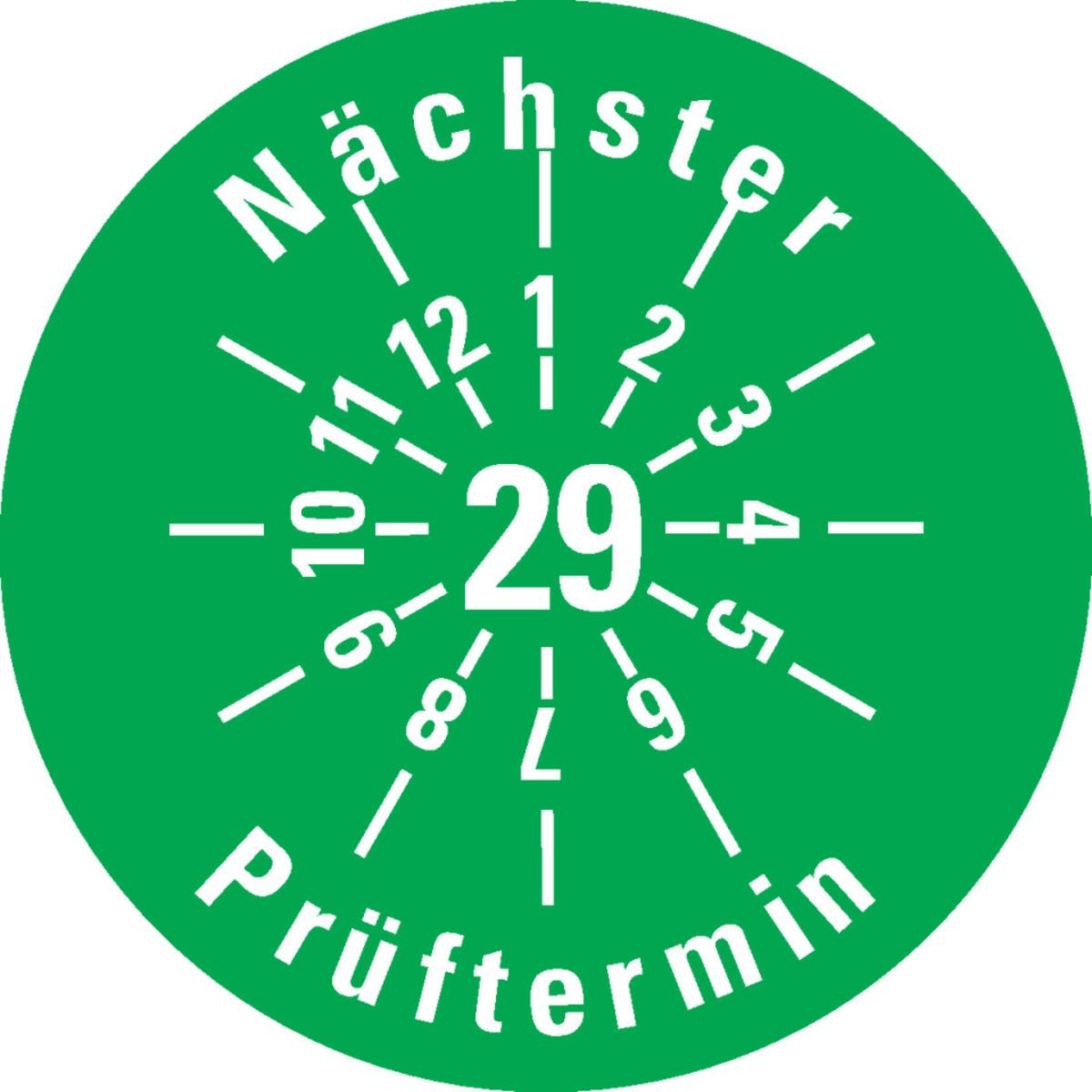 Auswahl: Prüfplakette Nächster Prüftermin 29, grün, Dokumentenfolie, Ø 30mm, 18/Bogen