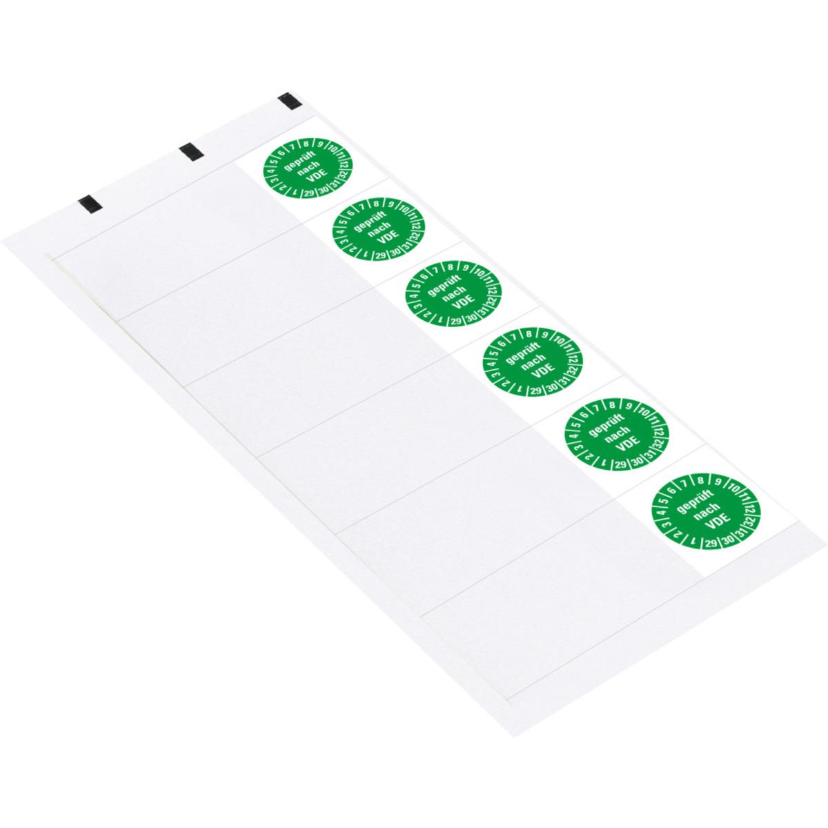 Auswahl: Kabelprüfplakette geprüft nach VDE 29-32, grün, Folie, 95x25mm, 6/Bogen