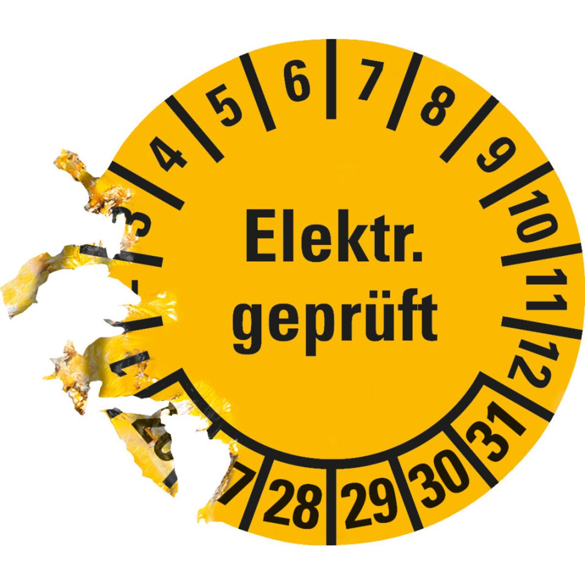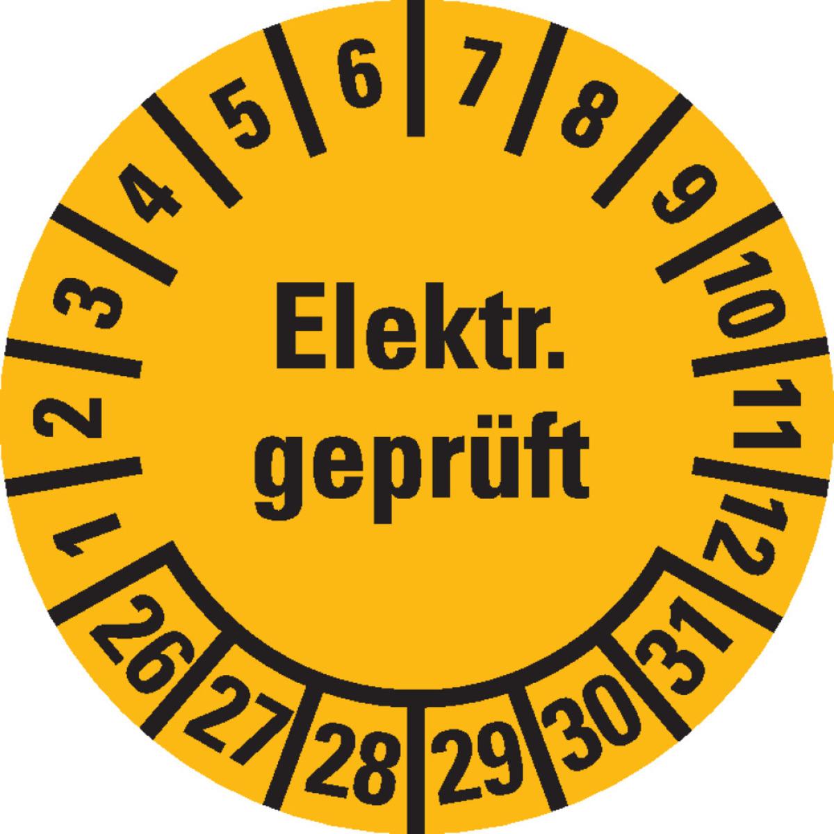 Auswahl: Prüfplakette Elektr. geprüft 26-31, gelb, Dokufolie, selbstklebend, Ø 20mm, 36/Bogen