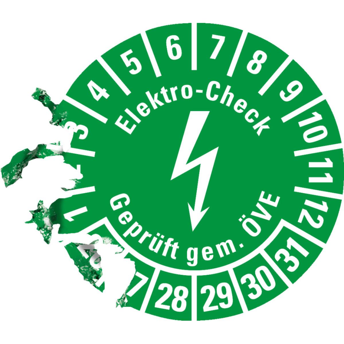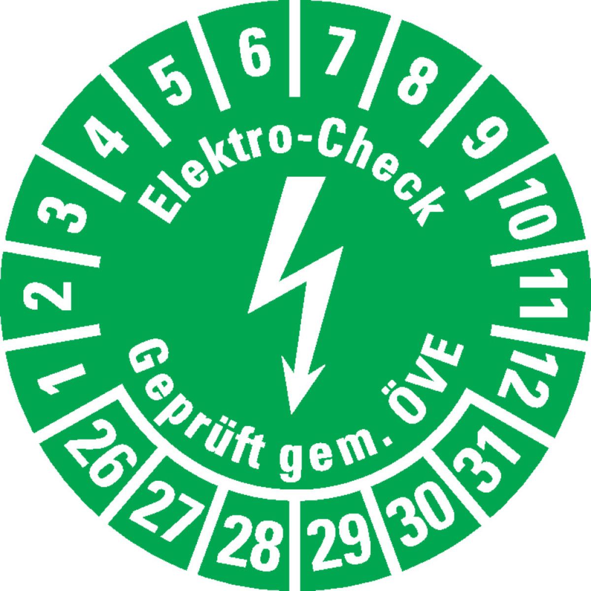 Auswahl: Prüfplakette Elektro-Check ÖVE, 26-31, grün/weiß, Dokumentenfolie, Ø 20mm, 36/Bogen